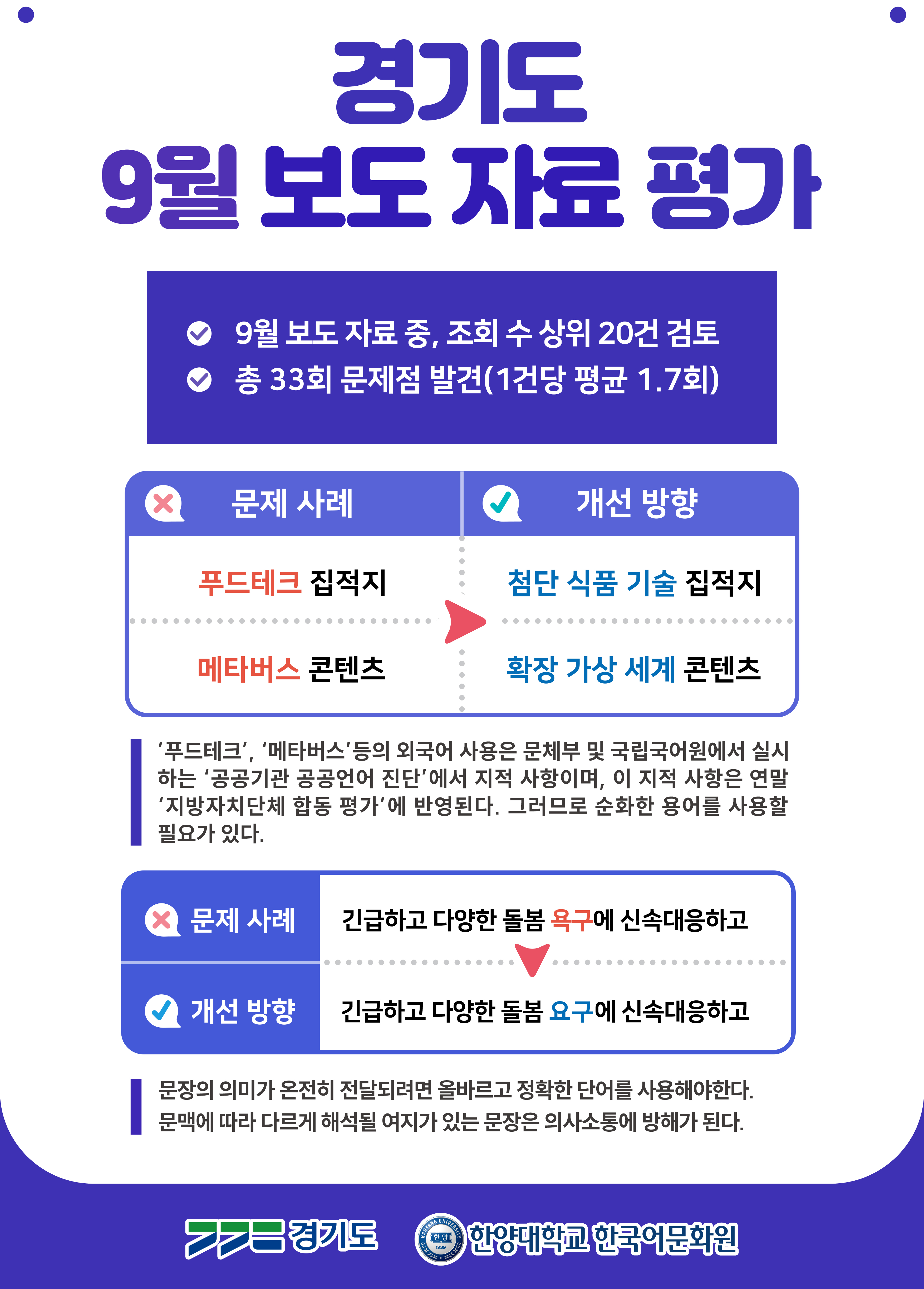 [2023 경기도국어문화진흥사업] 9월 보도자료 평가 결과와 교육자료