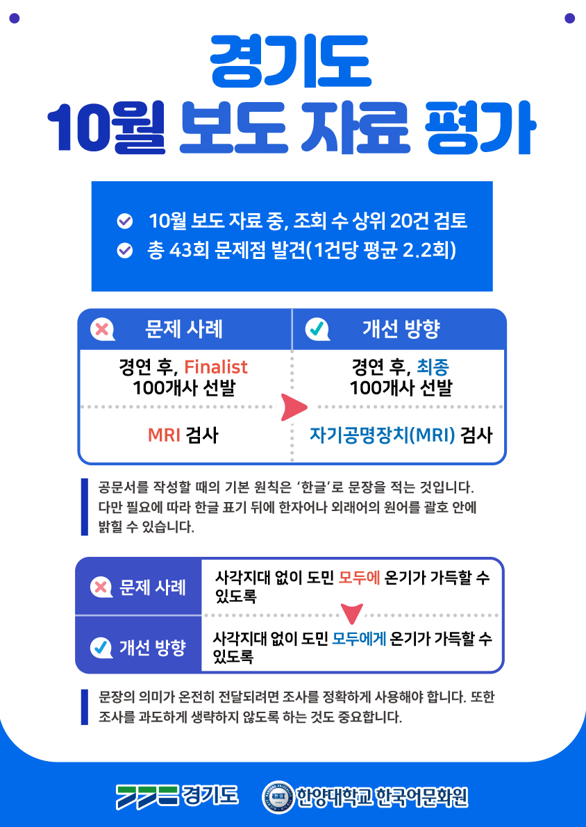 [2023 경기도국어문화진흥사업] 10월 보도자료 평가 결과와 교육자료