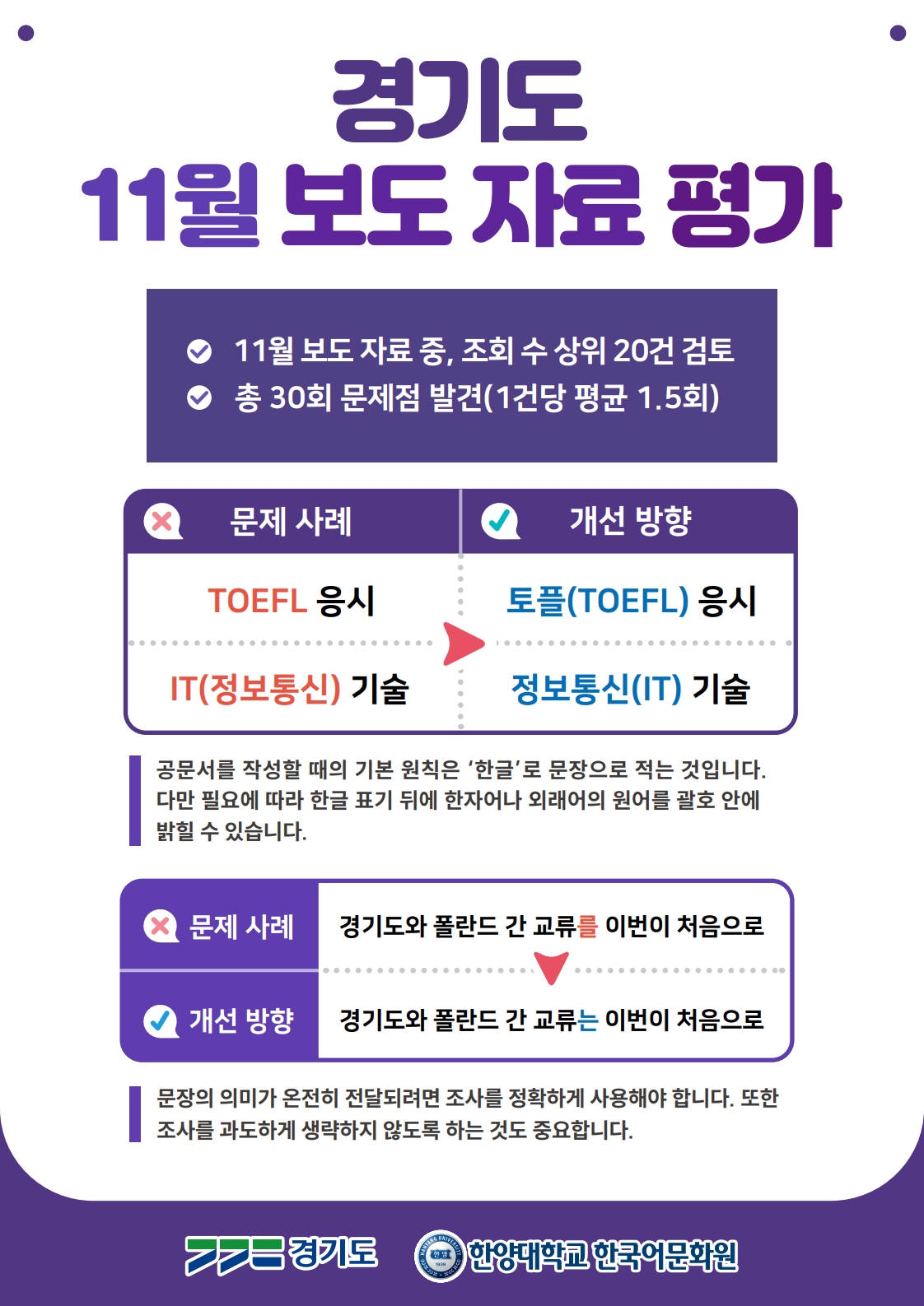 [2023 경기도국어문화진흥사업] 11월 보도자료 평가 결과와 교육자료