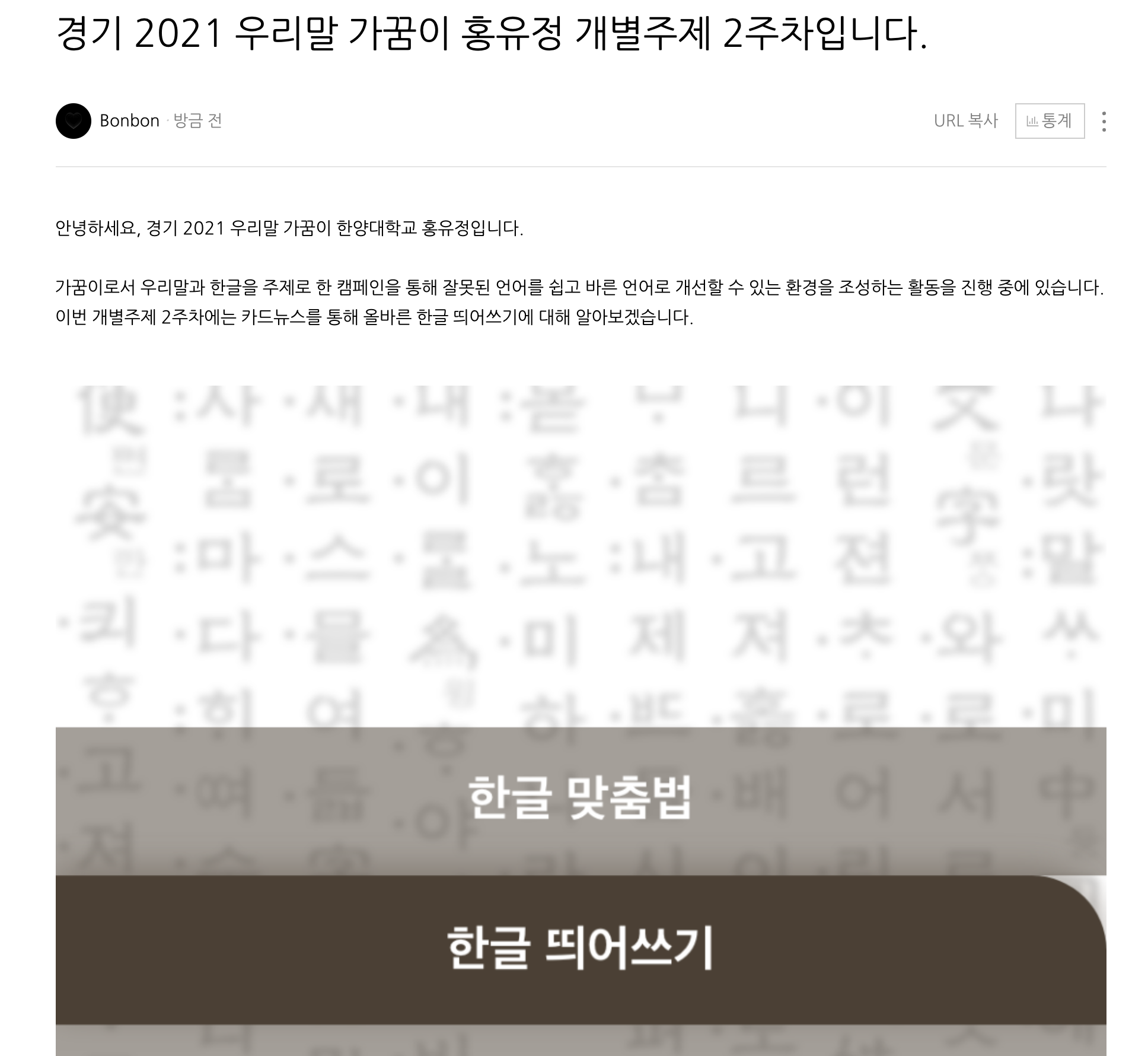 경기 2021 우리말 가꿈이 홍유정 개별주제 2주차입니다.