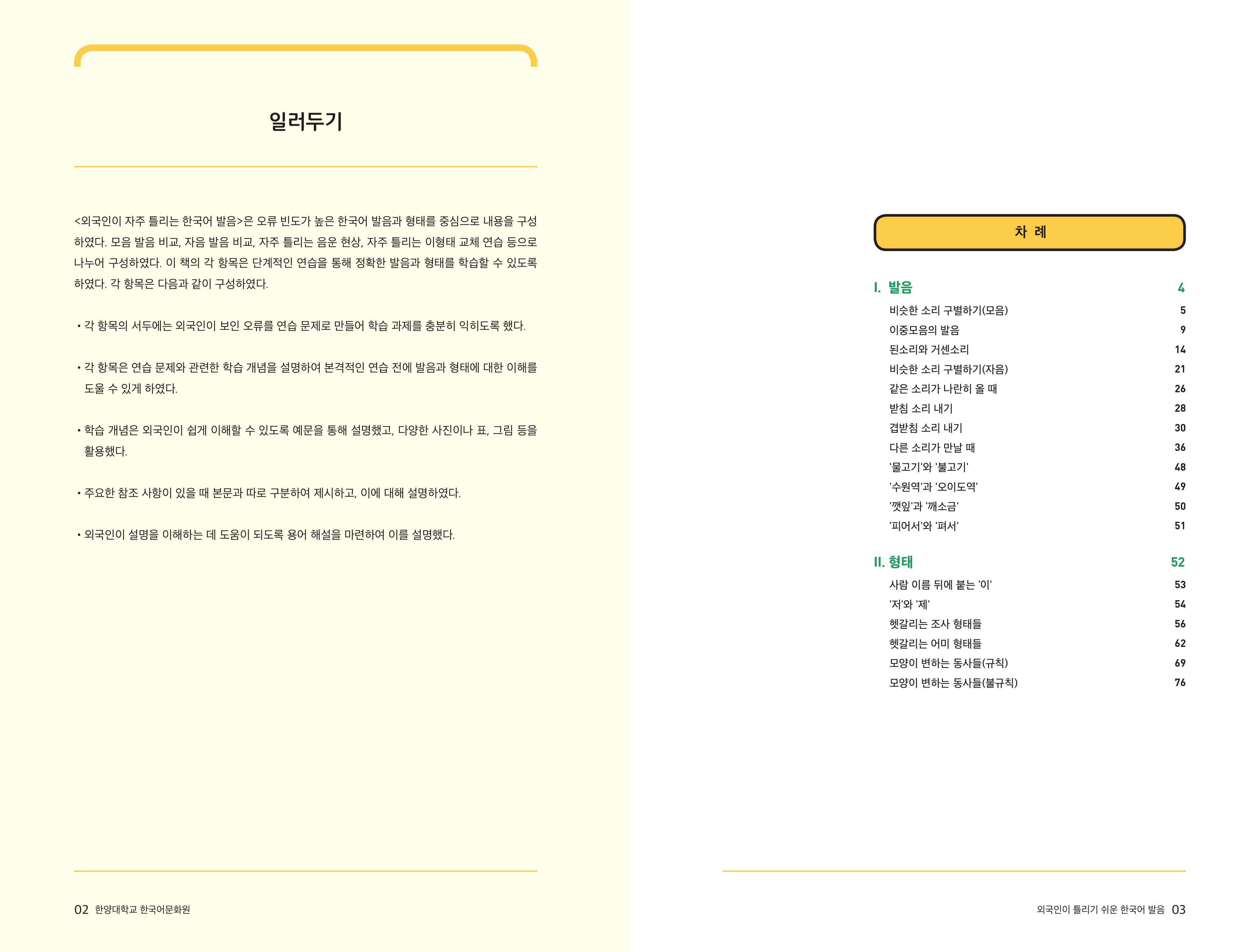 [외국인이 틀리기 쉬운 한국어 발음] 차례와 머리말