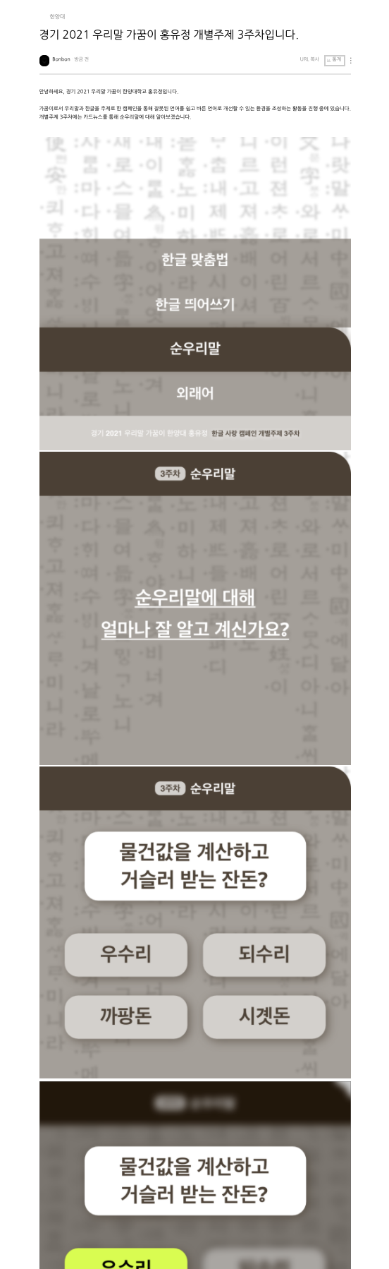 경기 2021 우리말 가꿈이 홍유정 개별주제 3주차입니다.