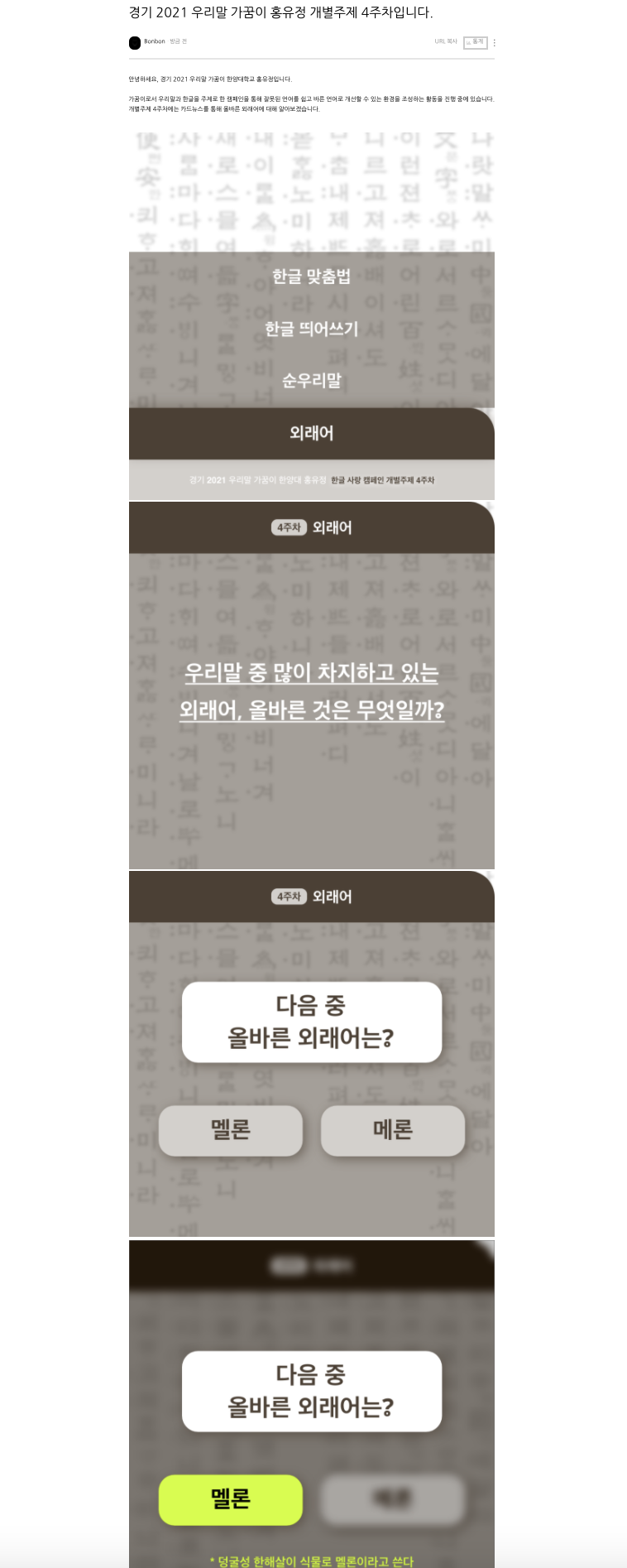 경기 2021 우리말 가꿈이 홍유정 개별주제 4주차입니다