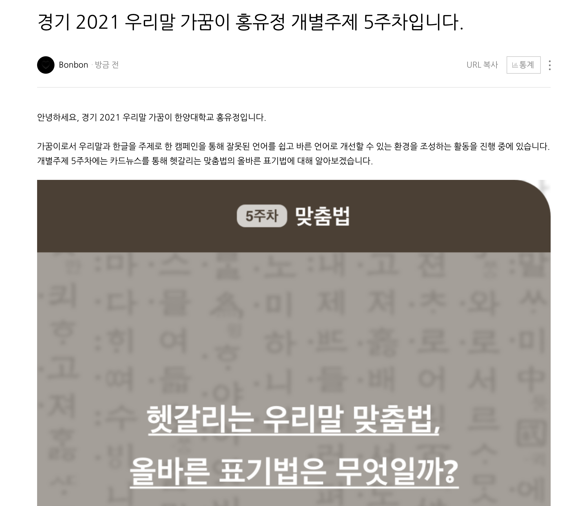 경기 2021 우리말 가꿈이 홍유정 개별주제 5주차 추가