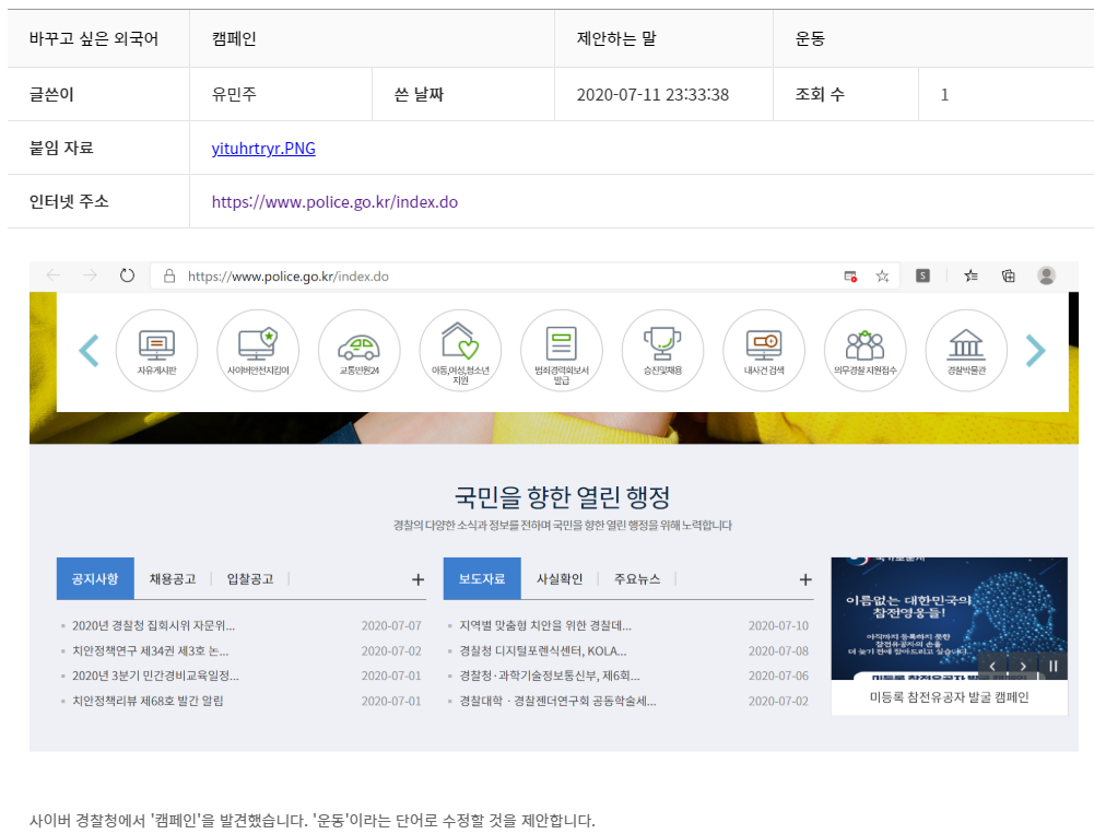 2020 우리말 가꿈이 1기 1차 결과물 제출