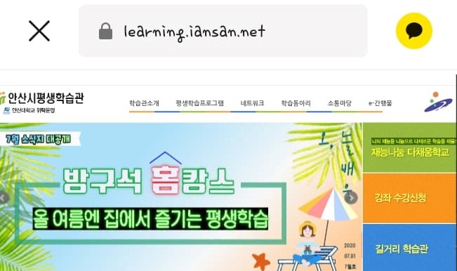안산시평생학습관 누리집에서 '홈캉스'라는 말을 찾아 '집에서 휴가보내는'누리집에 신고하였습니다