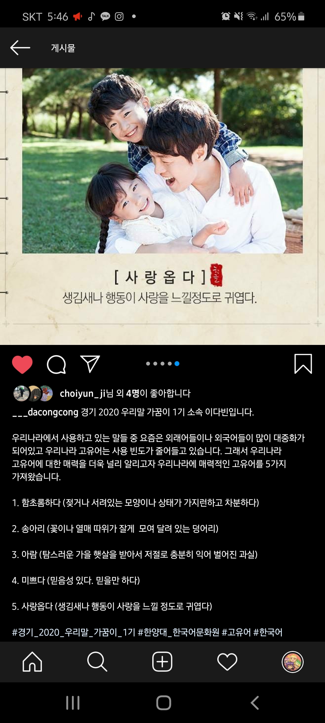 우리말에 고유어 5가지를 소개하는 활동을 하였습니다.