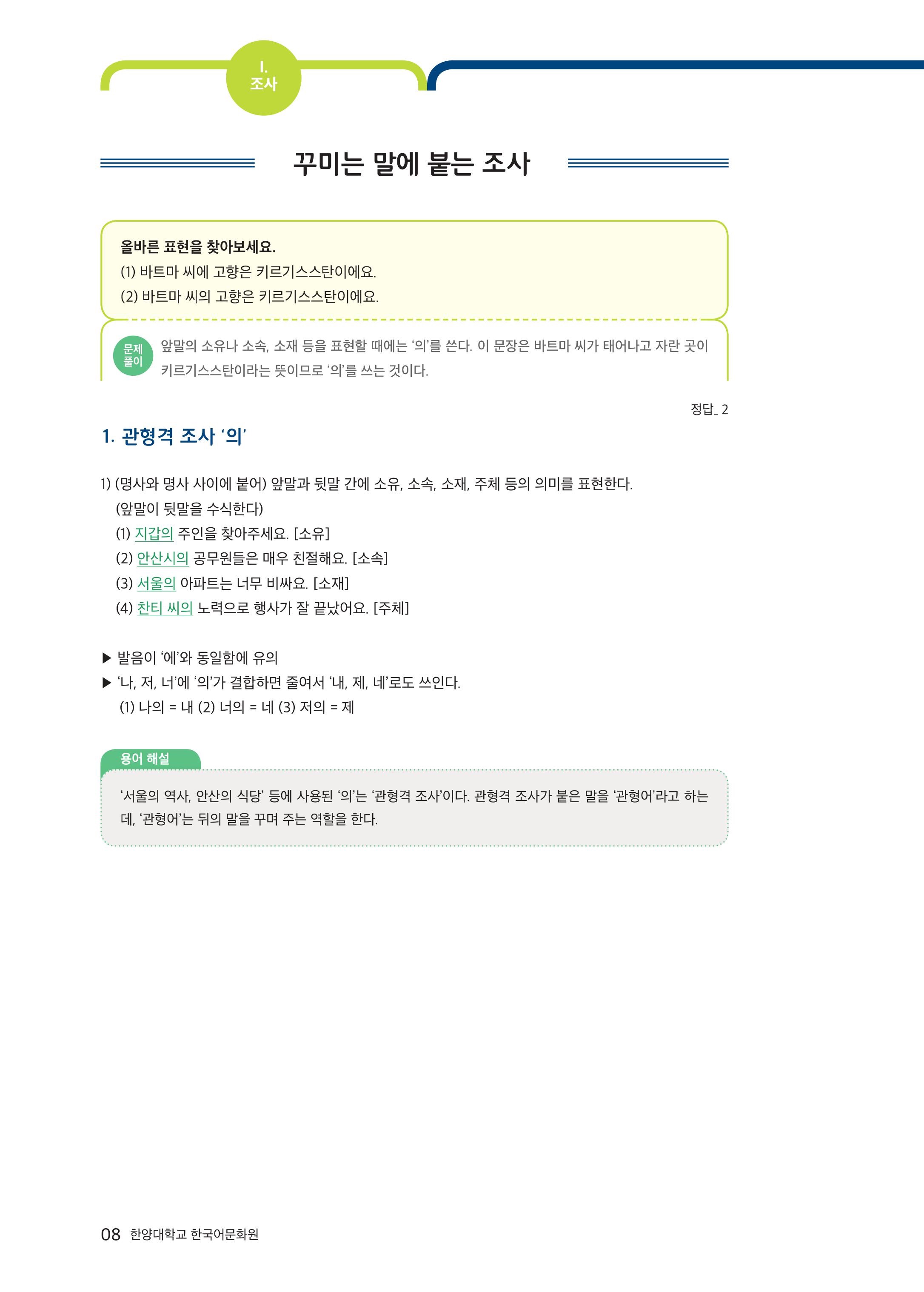 [외국인이 틀리기 쉬운 한국어 문법] 1-3 꾸미는 말에 붙는 조사