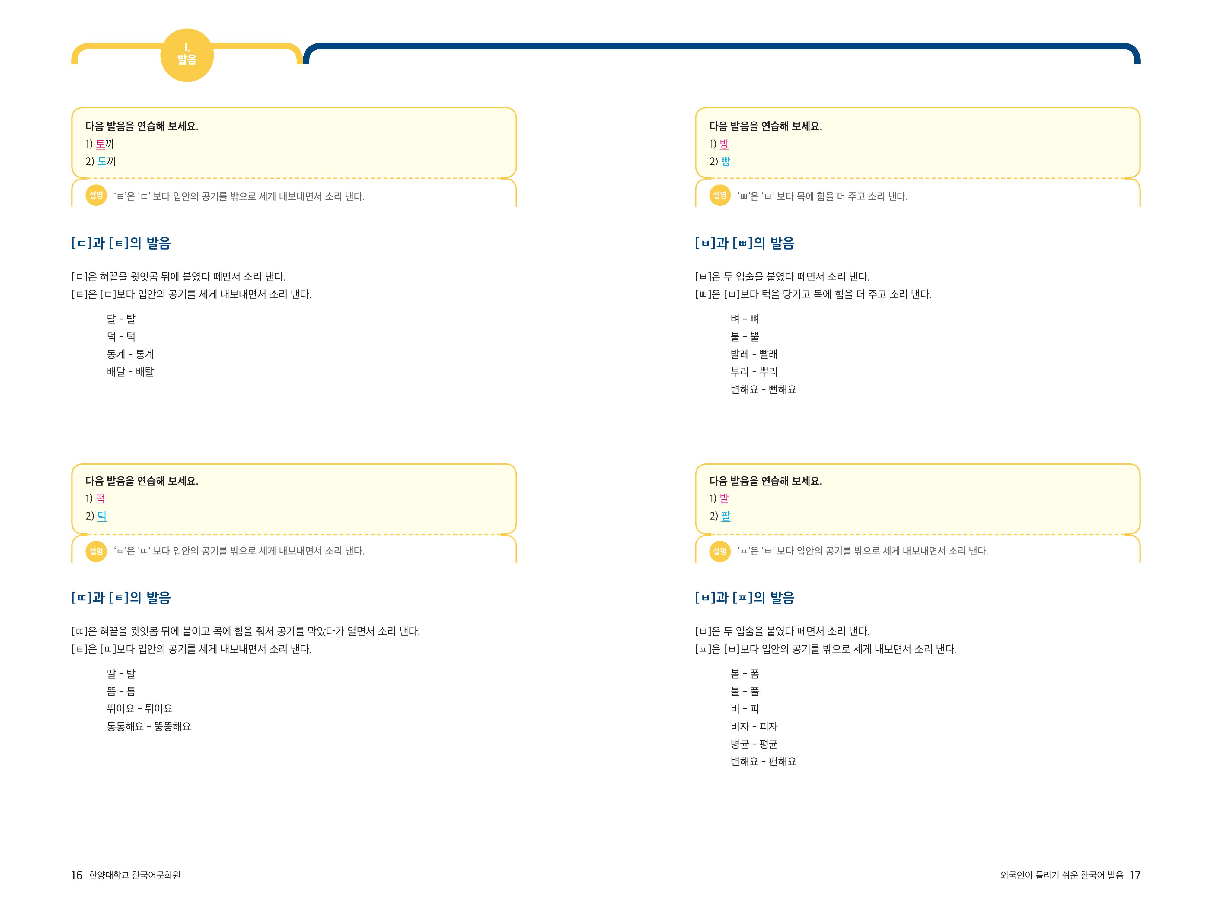 [외국인이 틀리기 쉬운 한국어 발음] 1-3 된소리와 거센소리