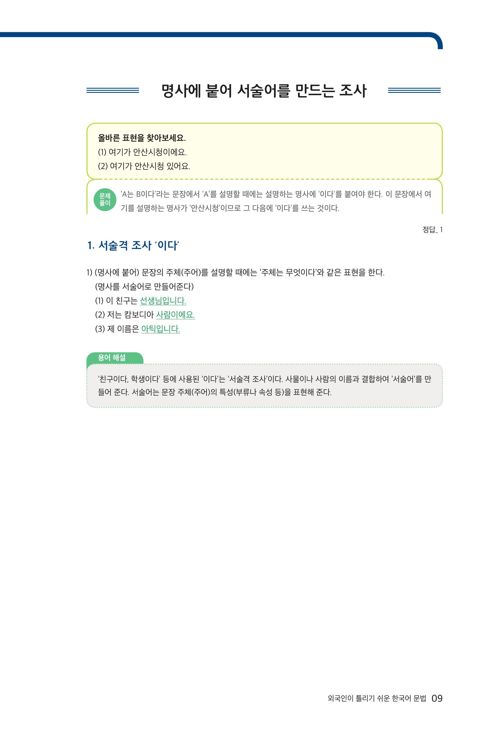[외국인이 틀리기 쉬운 한국어 문법] 1-4 명사에 붙어 서술어를 만드는 조사