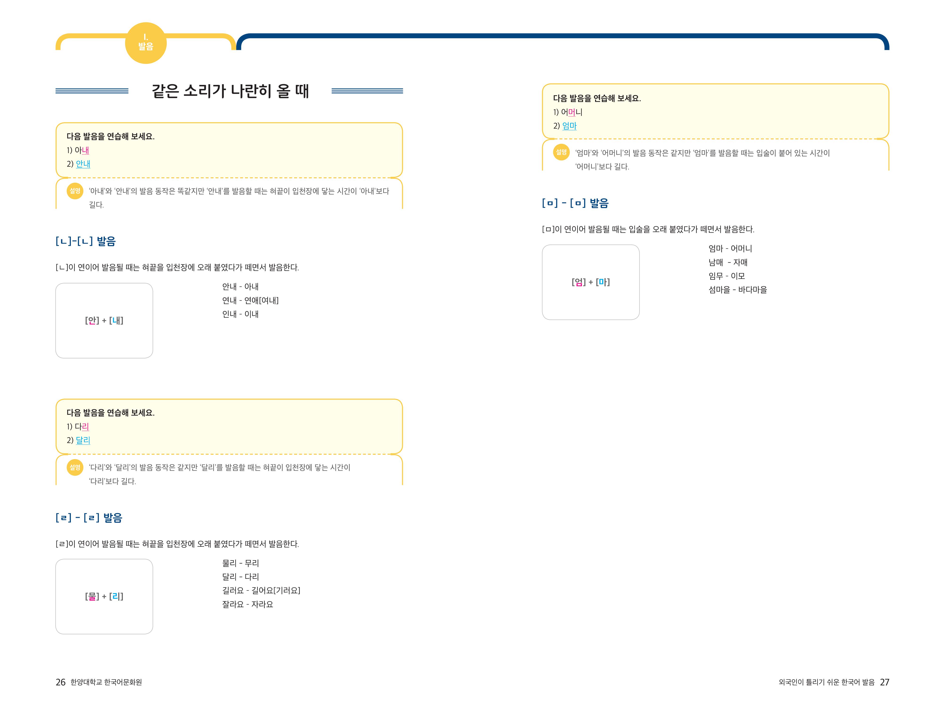 [외국인이 틀리기 쉬운 한국어 발음] 1-5 같은 소리가 나란히 올 때