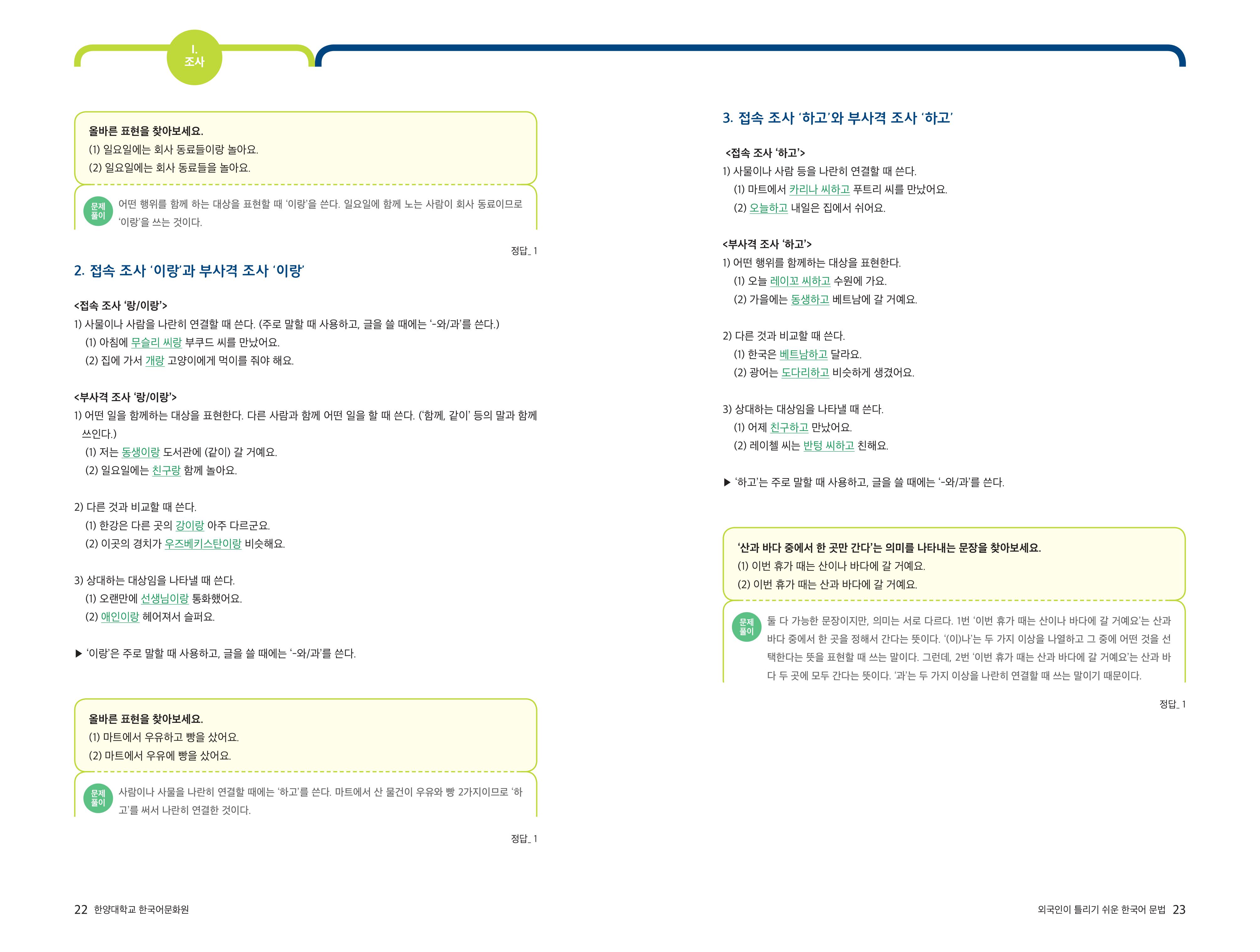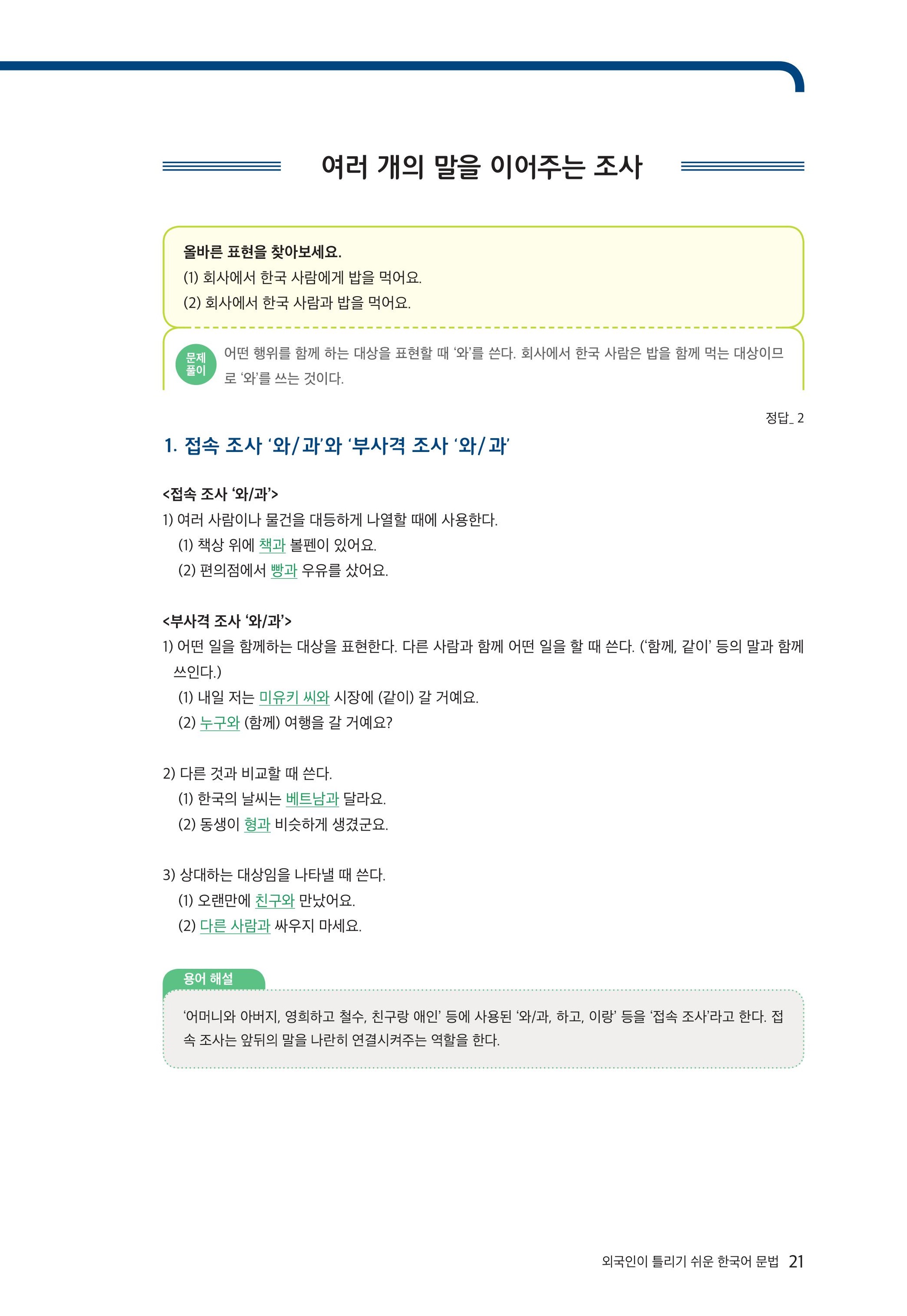 [외국인이 틀리기 쉬운 한국어 문법] 1-7 여러 개의 말을 이어주는 조사