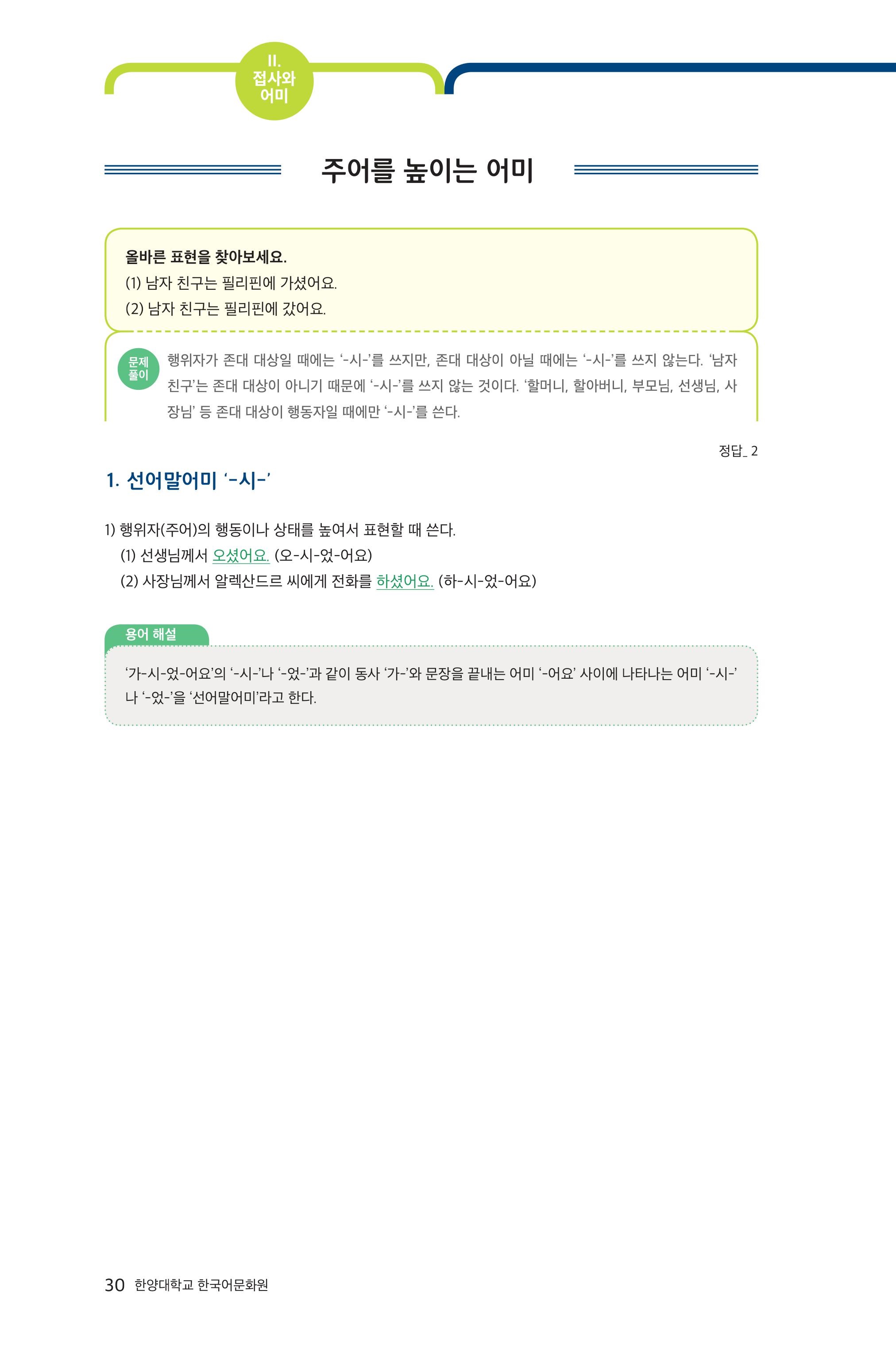 [외국인이 틀리기 쉬운 한국어 문법] 2-2 주어를 높이는 어미