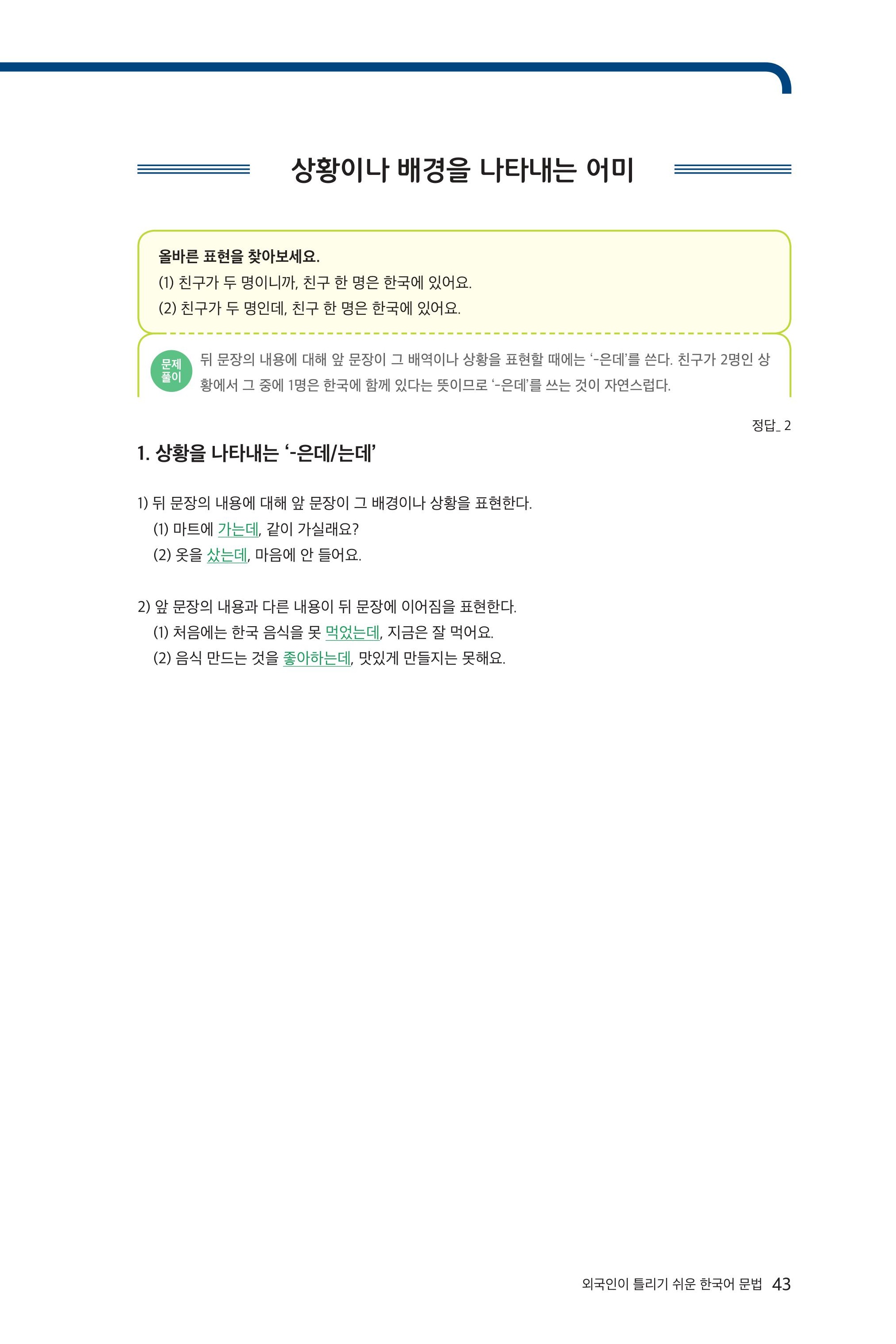 [외국인이 틀리기 쉬운 한국어 문법] 2-8 상황이나 배경을 나타내는 어미