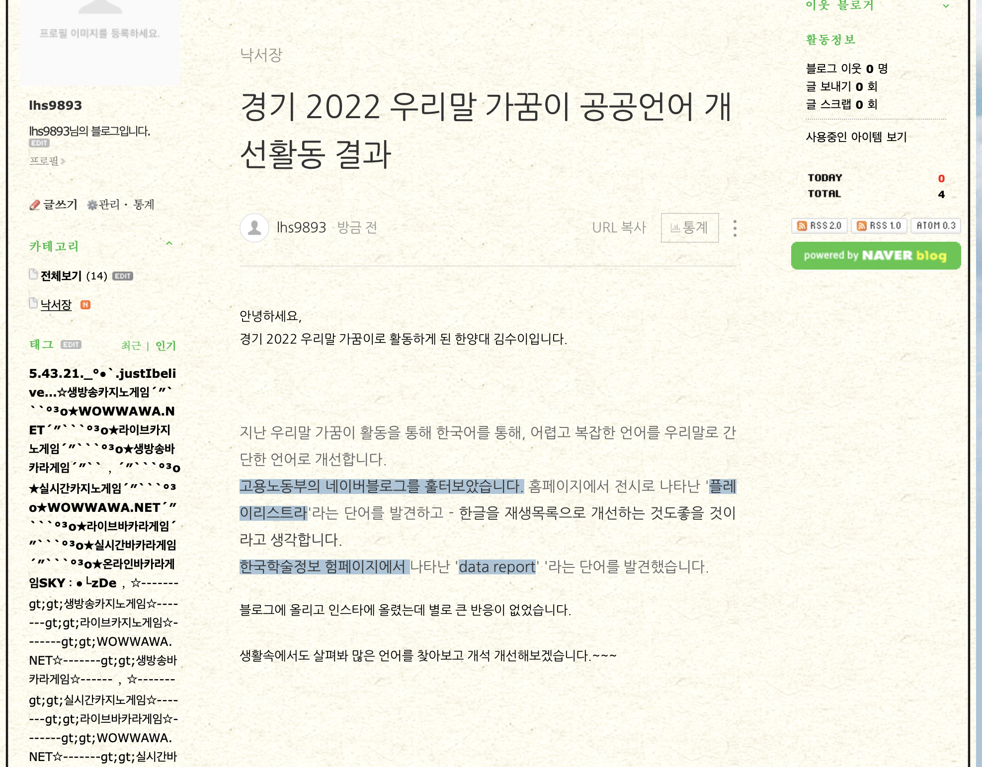 경기 2022우리말 가꿈이 공공언어 개선활동 결과보고