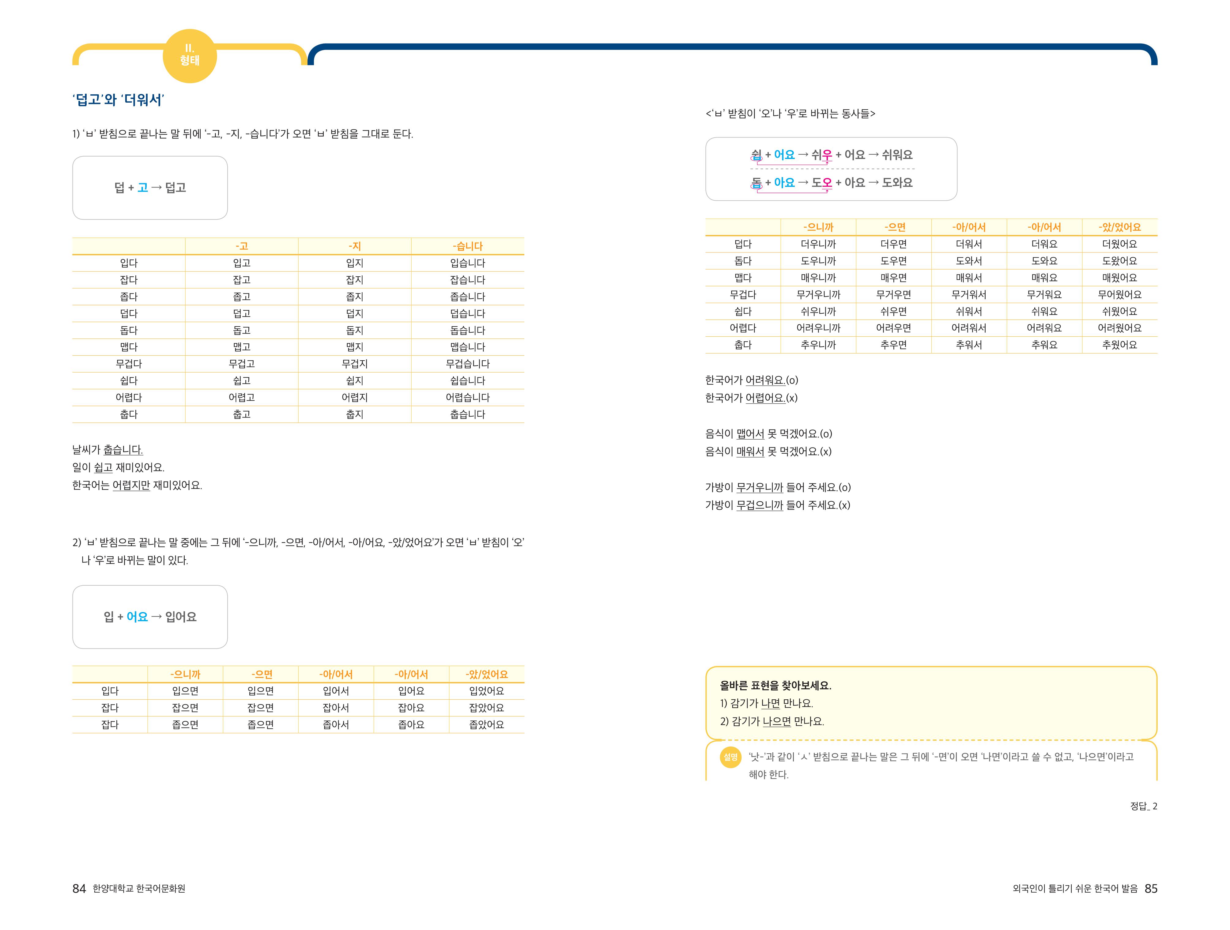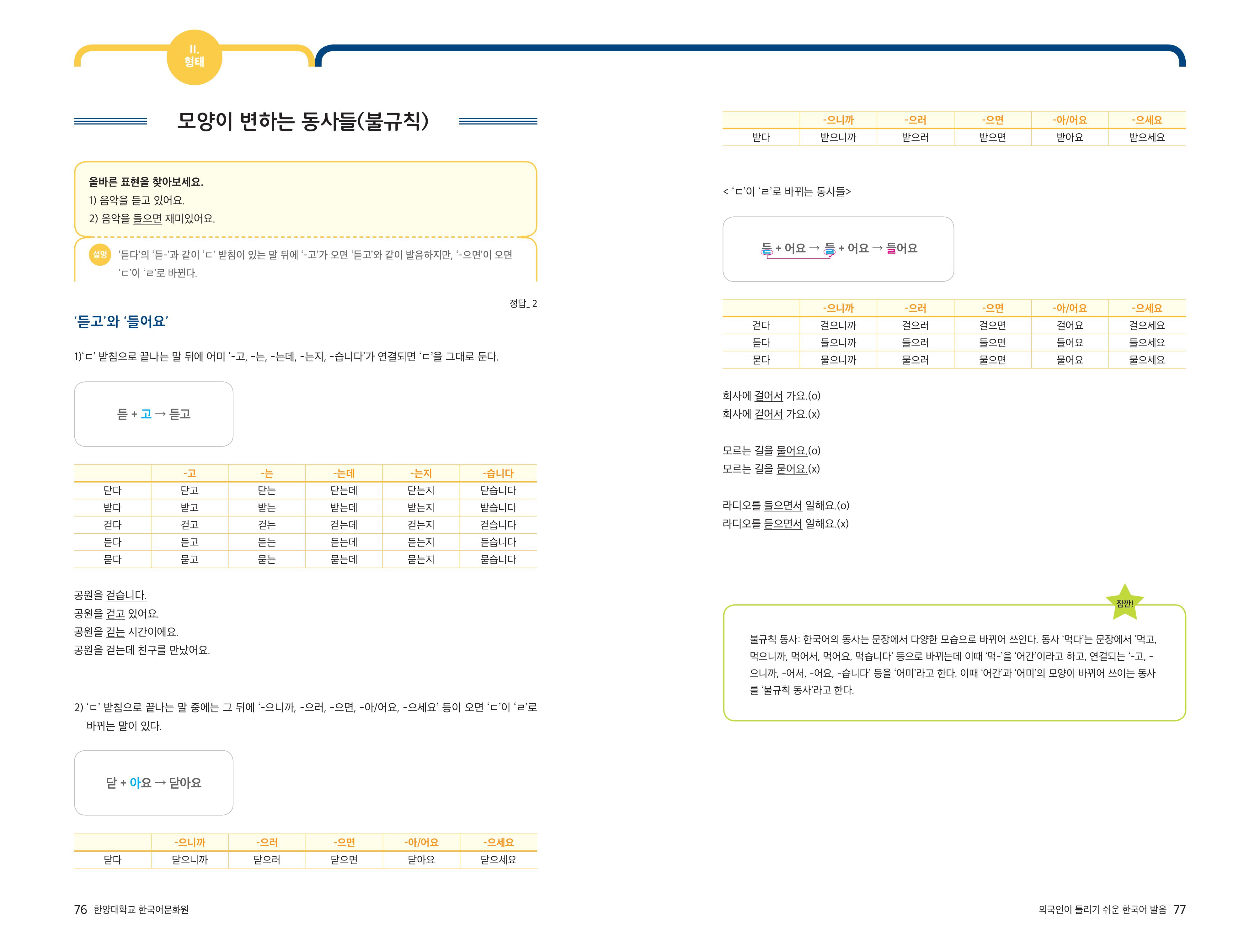 [외국인이 틀리기 쉬운 한국어 발음] 2-6 모양이 변하는 동사들(불규칙)