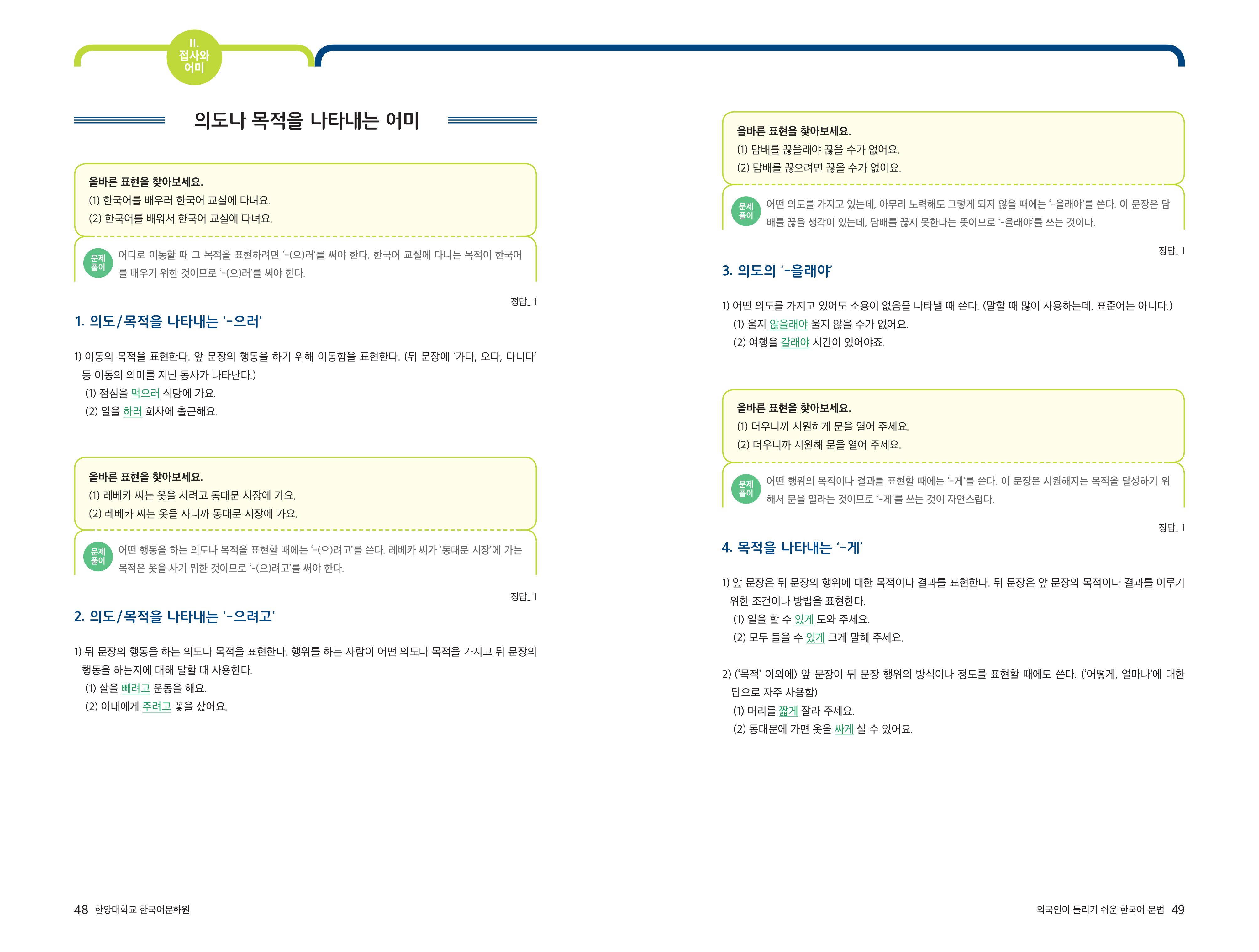 [외국인이 틀리기 쉬운 한국어 문법] 2-10 의도나 목적을 나타내는 어미