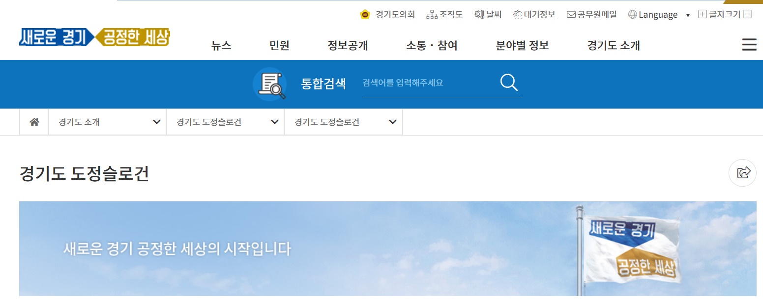 경기도청 홈페이지의 슬로건이란 단어를 바꾸어 보았습니다