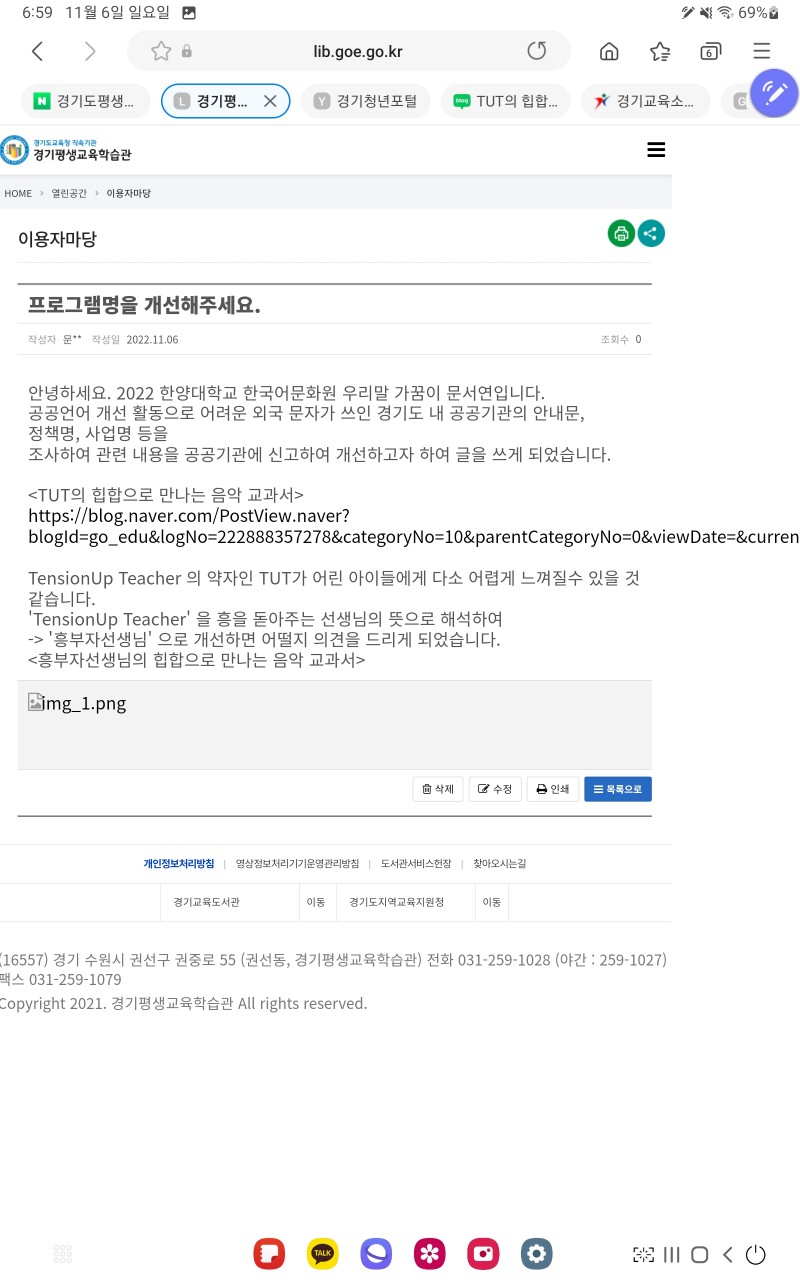 공공언어 개선활동1 결과와 개인 블로그에 게시글 업로드까지 첨부합니다.