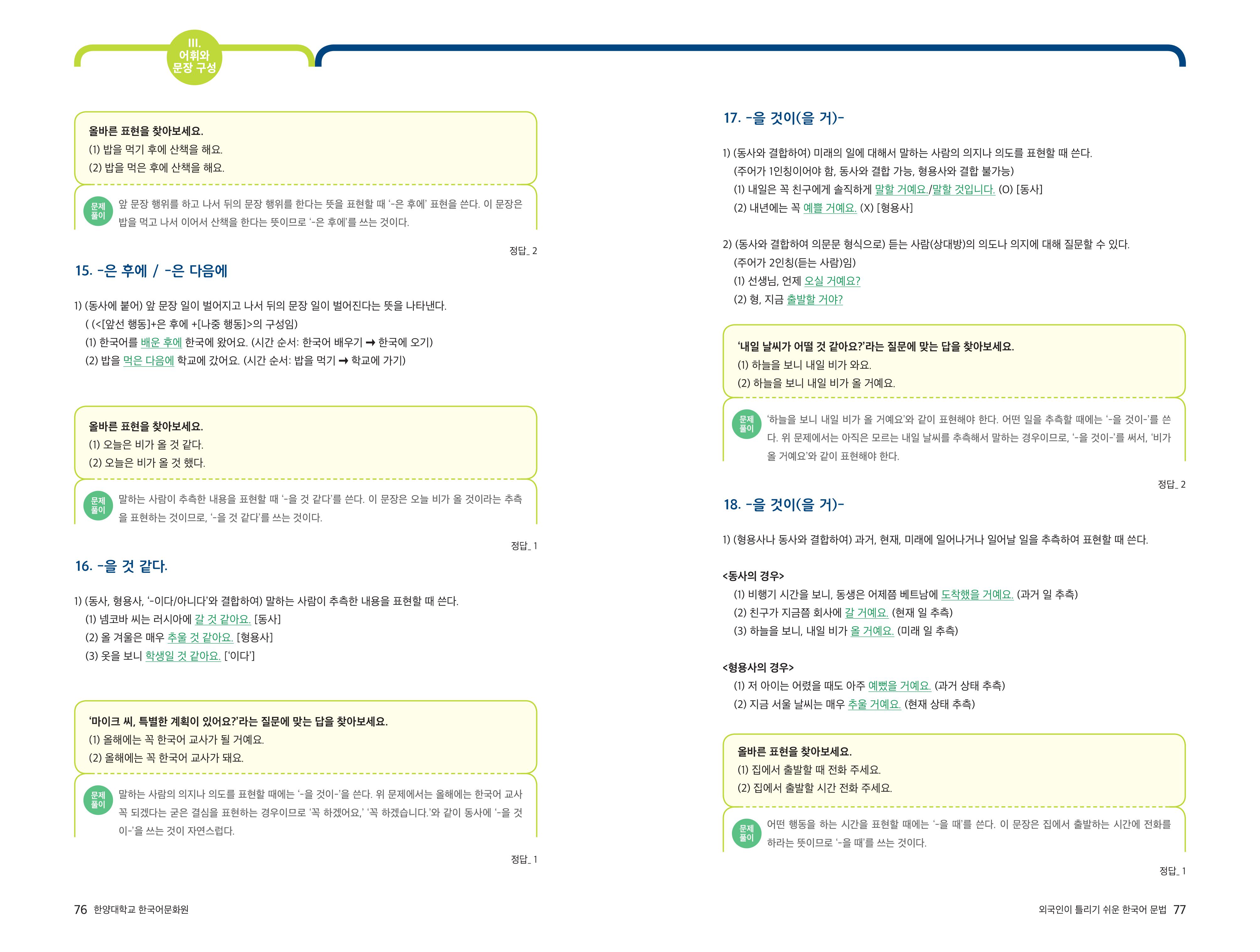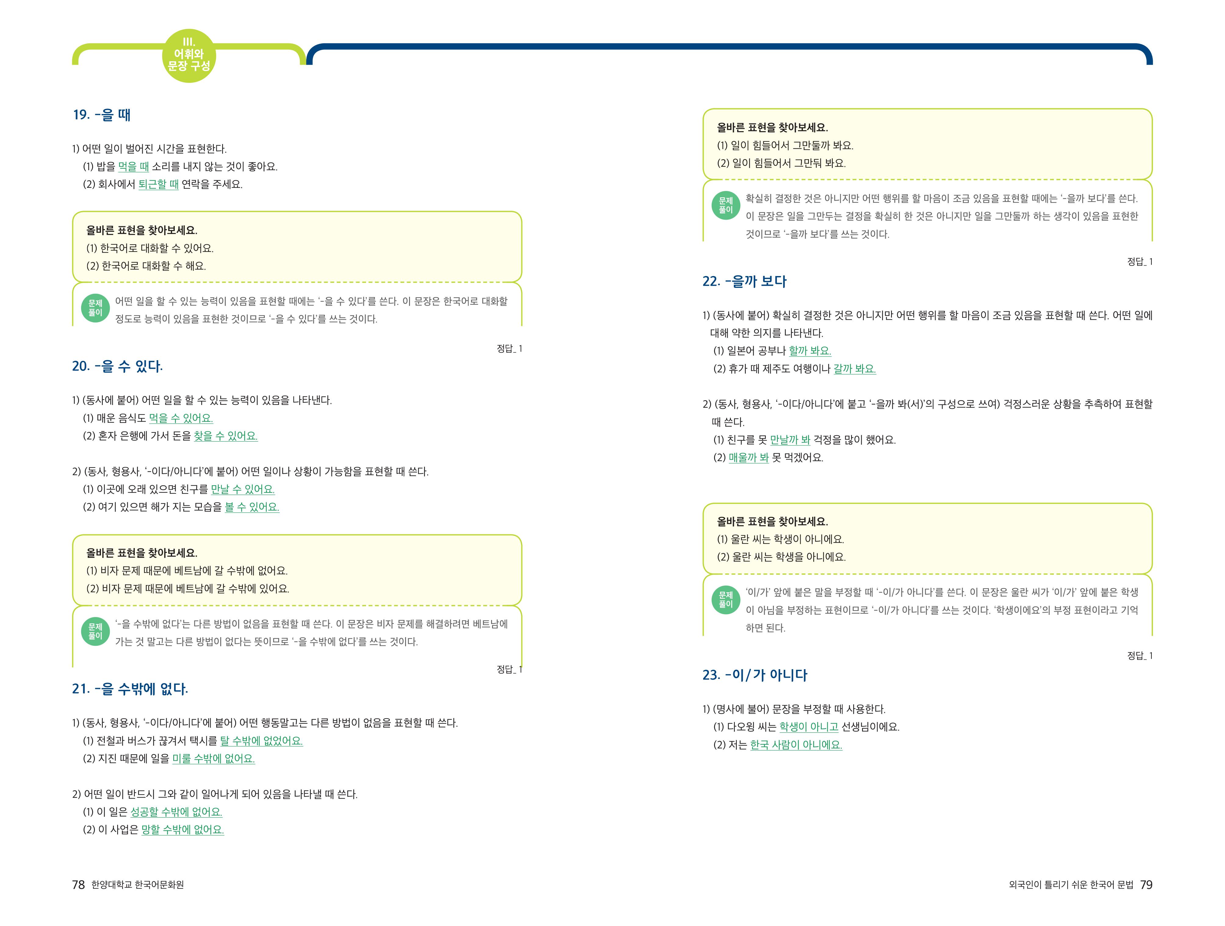 [외국인이 틀리기 쉬운 한국어 문법] 3-2 자주 쓰는 표현