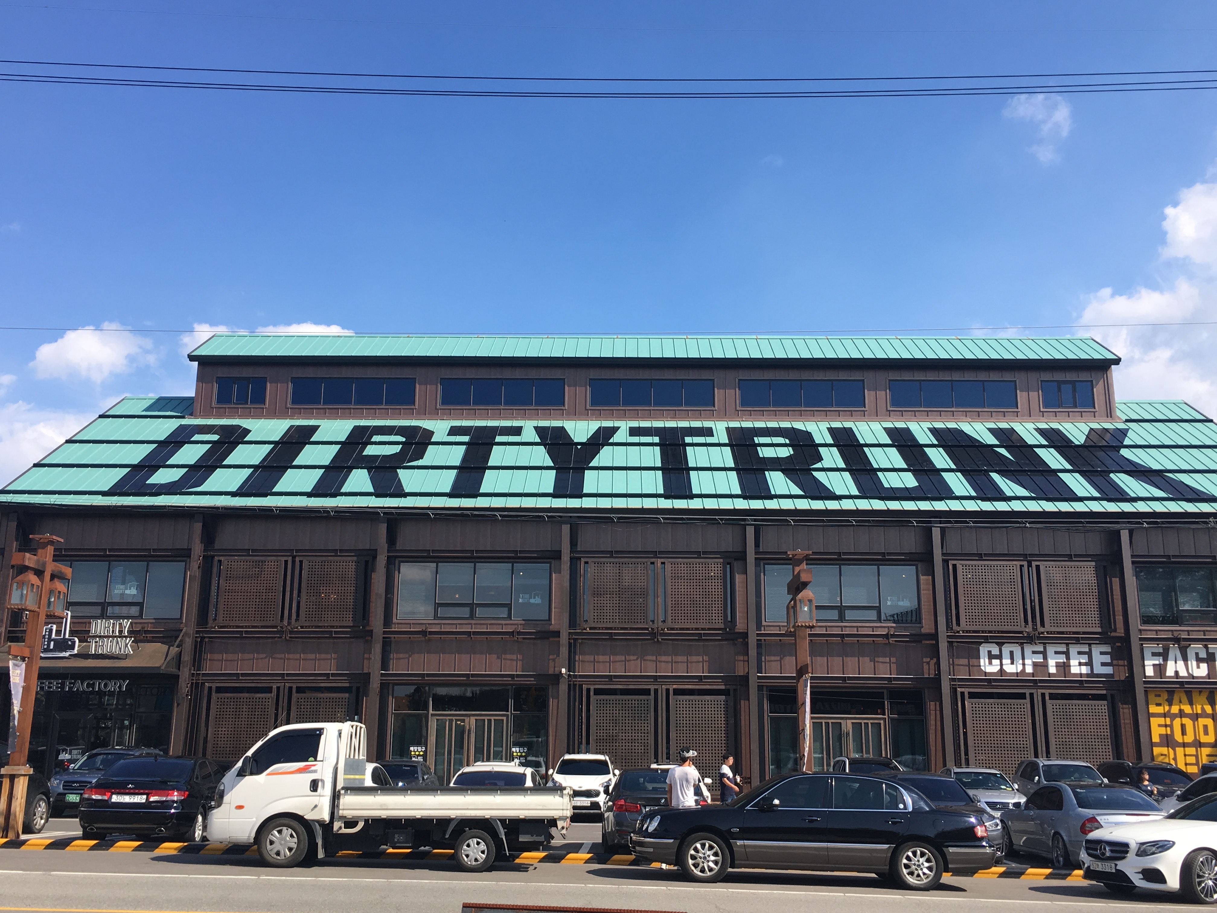 경기도 파주시에 위치한 카페입니다. 외래어 간판을 사용하고 있습니다. Dirty trunk를 낡은(더러운) 창고 등의 말로 제안드리고 싶습니다.