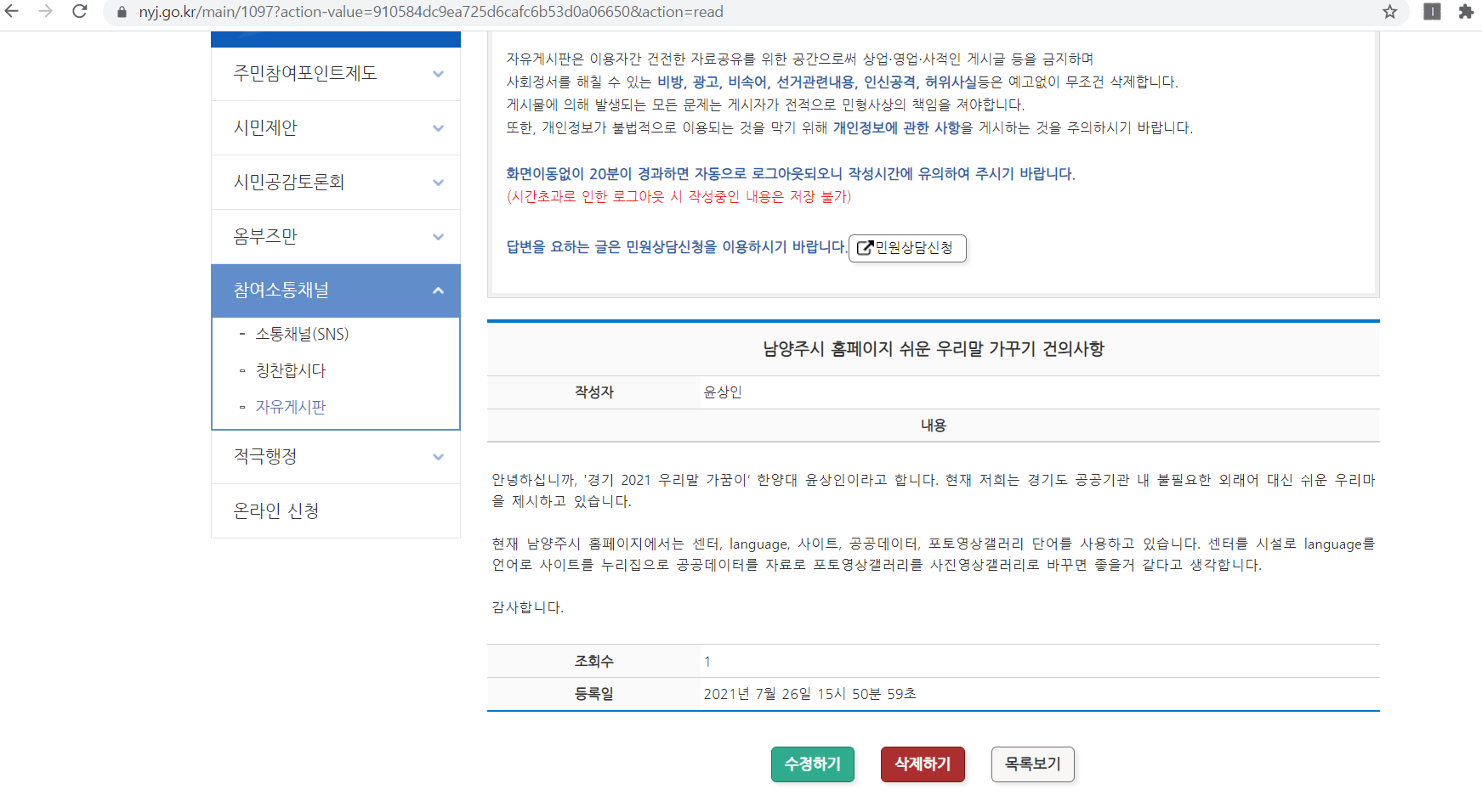 목록 수정 삭제 답글 등록