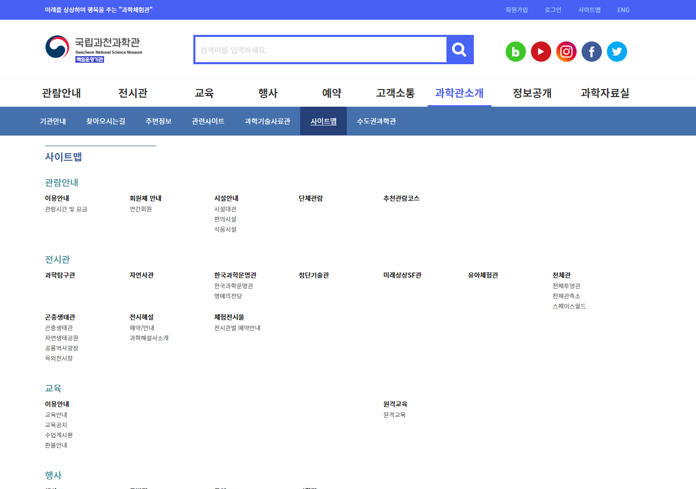 국립과천과학관 누리집에 있는 사이트맵이라는 단어를 같은 의미를 가진 우리말 '누리집지도'라는 단어로 대체할 것을 제안하였습니다.