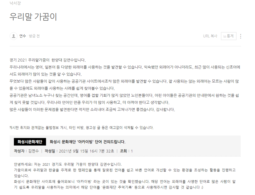 개인 네이버 블로그 게시글 업로드 했습니다.
