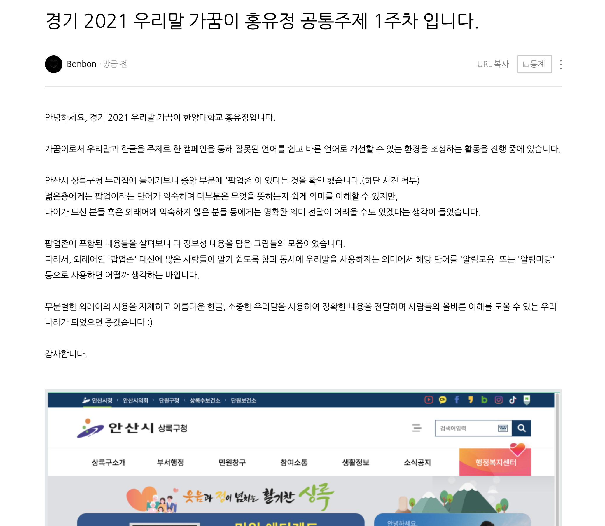 경기 2021 우리말 가꿈이 홍유정 공통주제 1주차 입니다.