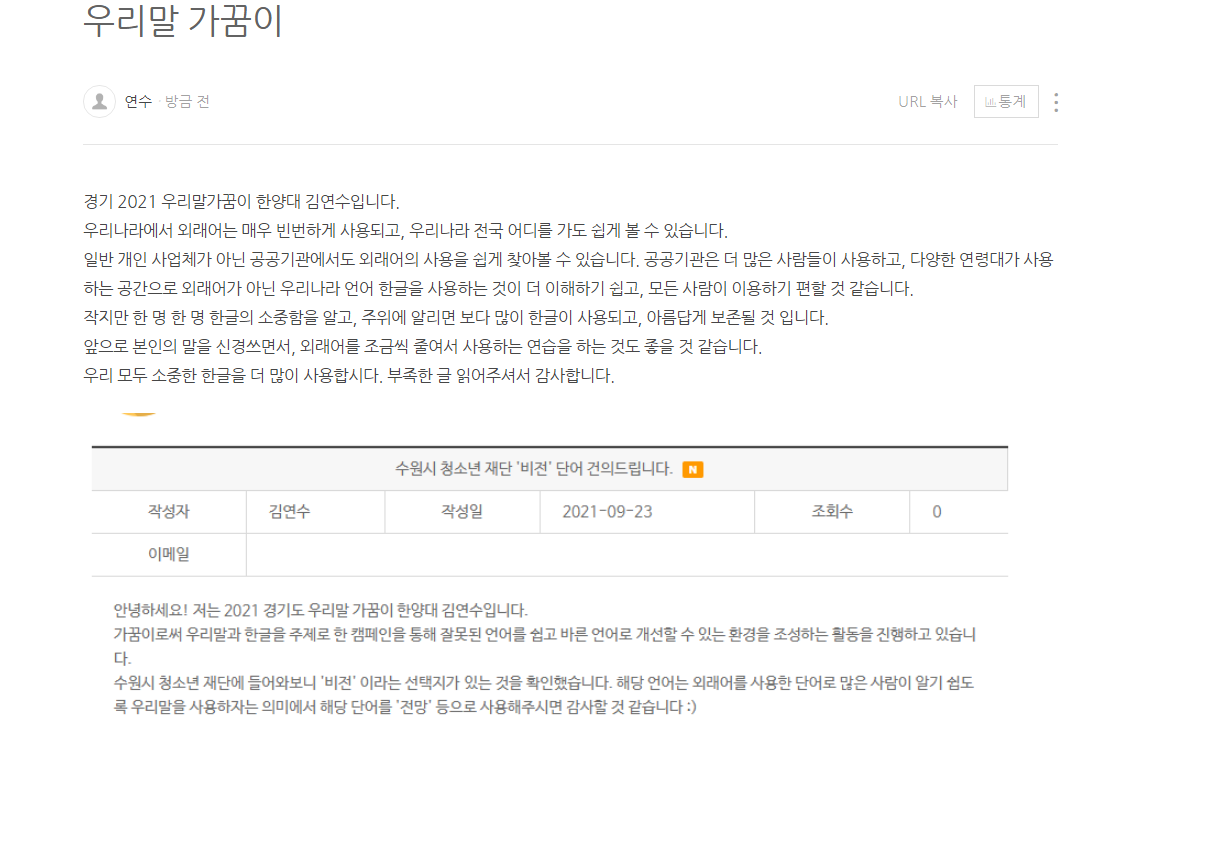 우리말 가꿈이 사회봉사 2주차 공통과제 진행하였습니다.