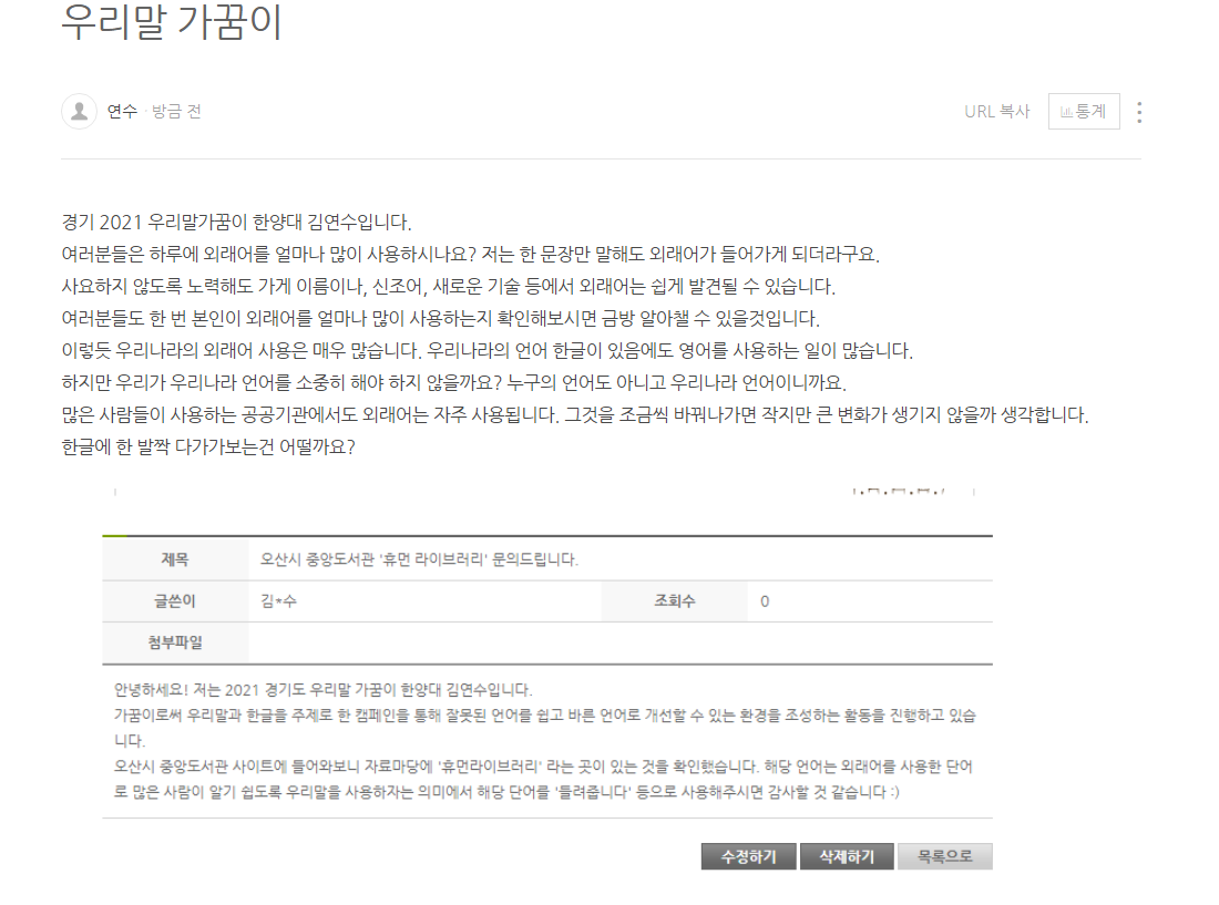 김연수 우리말 가꿈이 사회봉사 3주차 공통과제 제출합니다.