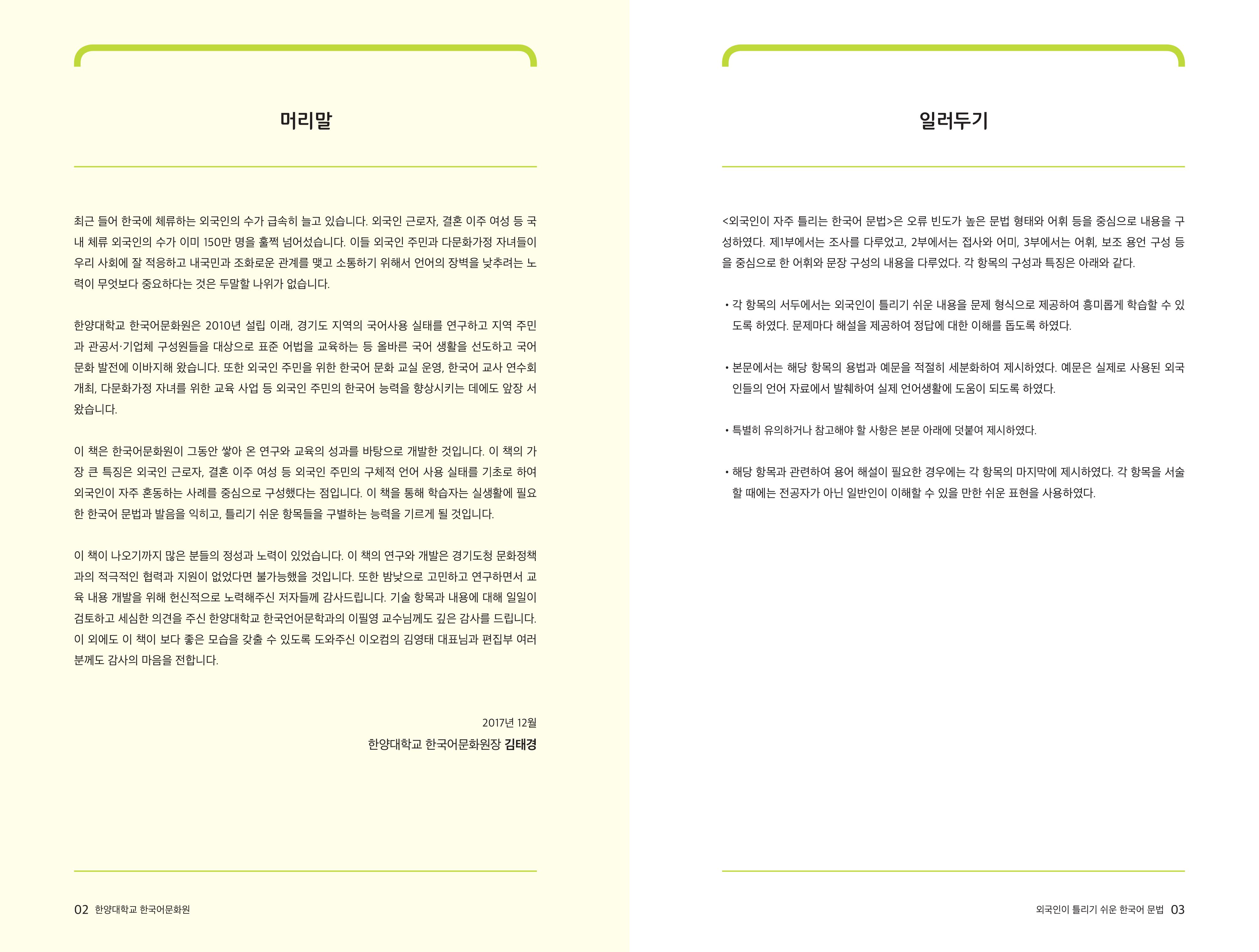 [외국인이 틀리기 쉬운 한국어 문법] 차례와 머리말