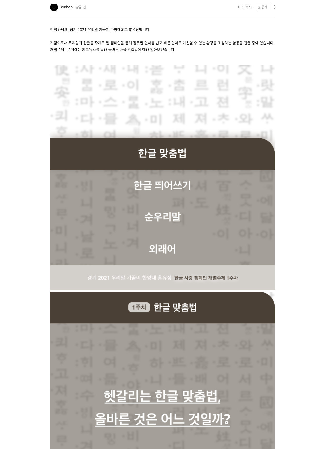 경기 2021 우리말 가꿈이 홍유정 개별주제 1주차입니다