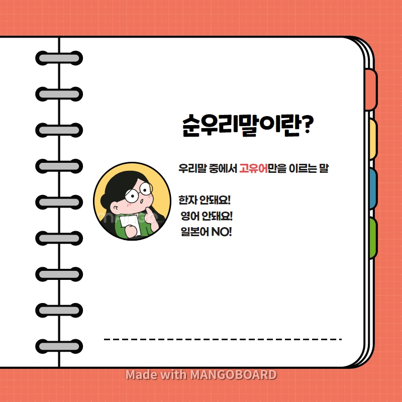 순우리말 알리는 카드뉴스 제작하여 개인 블로그에 업로드 했습니다