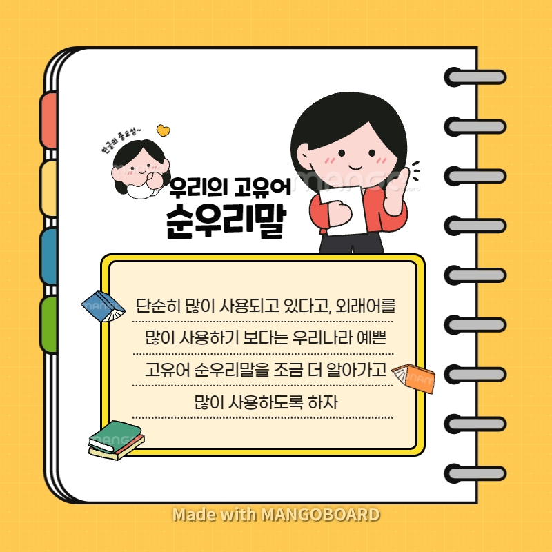 순우리말 알리는 카드뉴스 제작하여 개인 블로그에 업로드 했습니다