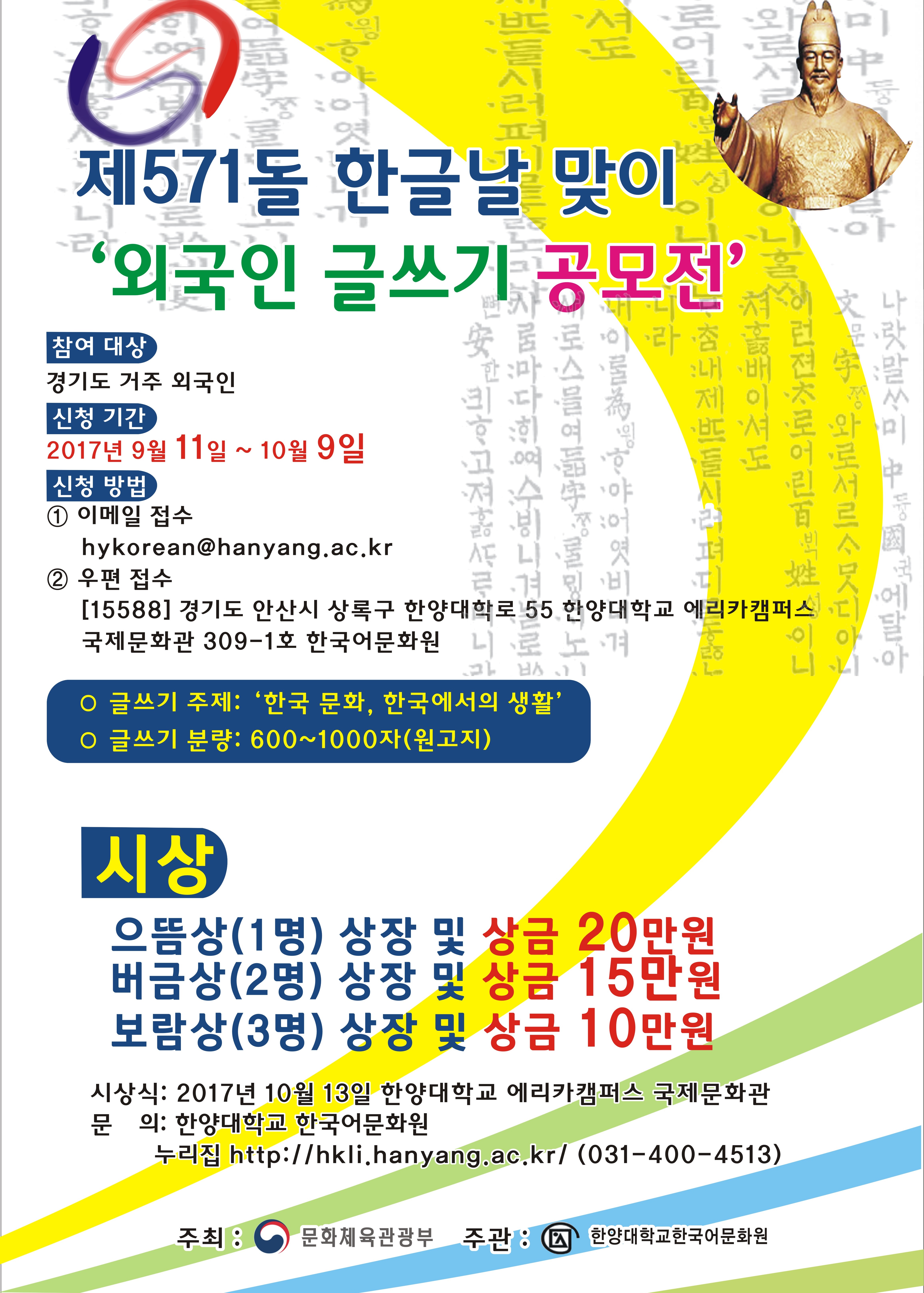 <2017 한글날 맞이 외국인 글쓰기 공모전>