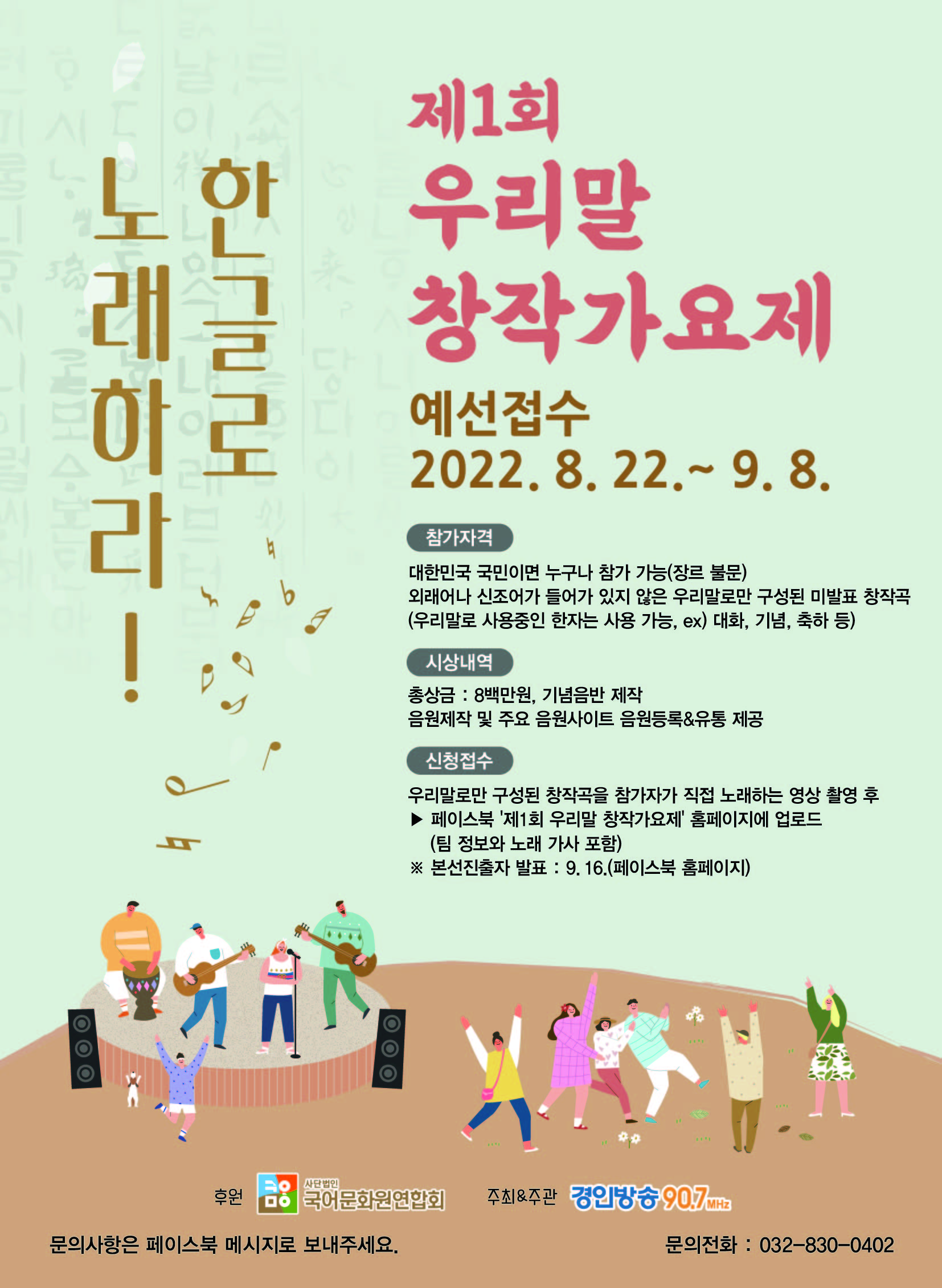 이 가요제는 국어문화원연합회에서 후원하고 경인방송 라디오가 주관하는 행사입니다.