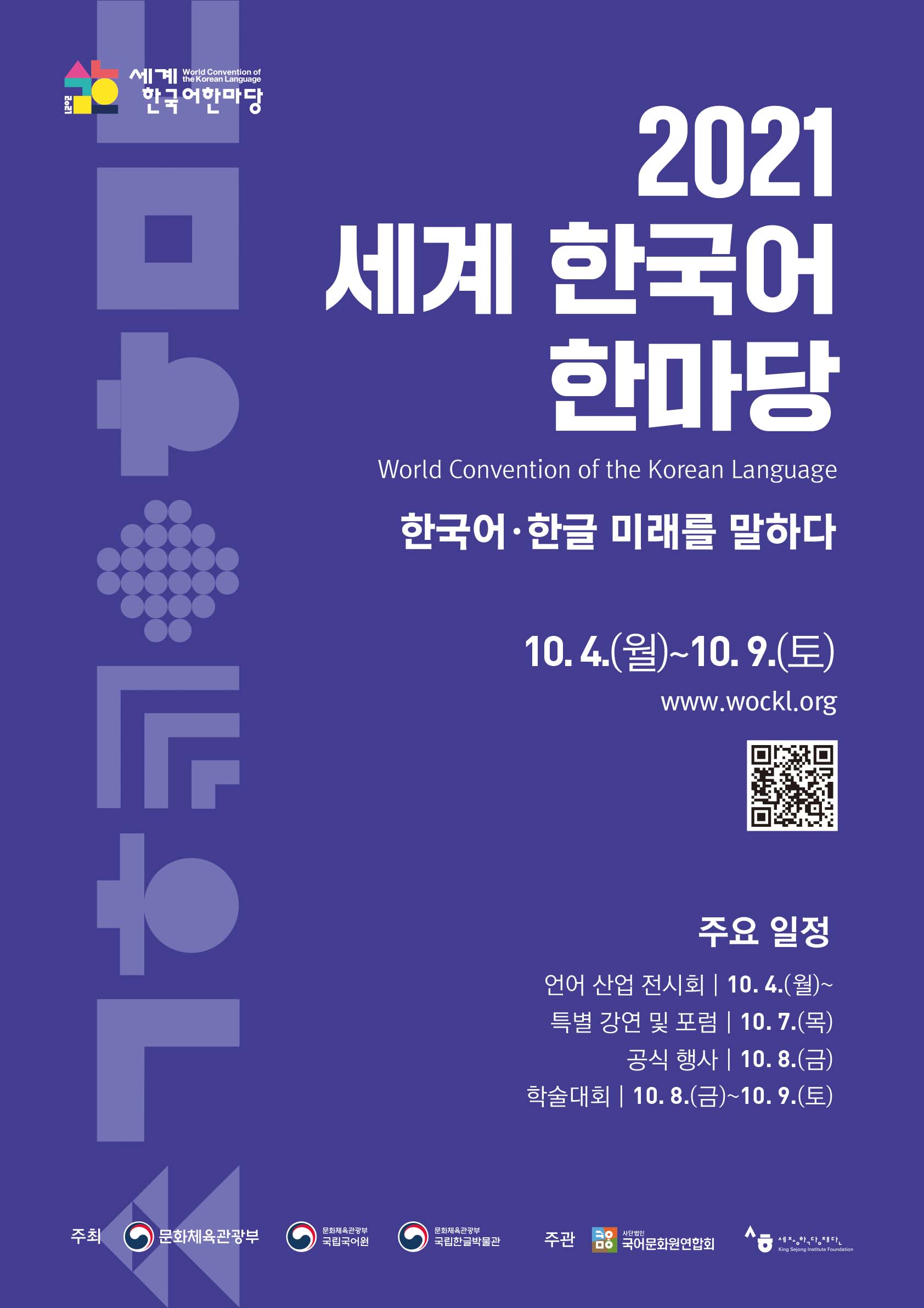 문화체육관광부, 국립국어원, 국립한글박물관이 주최하고 (사)국어문화원연합회, 세종학당재단이 주관하는 '2021 세계 한국어 한마당' 행사가 열립니다.