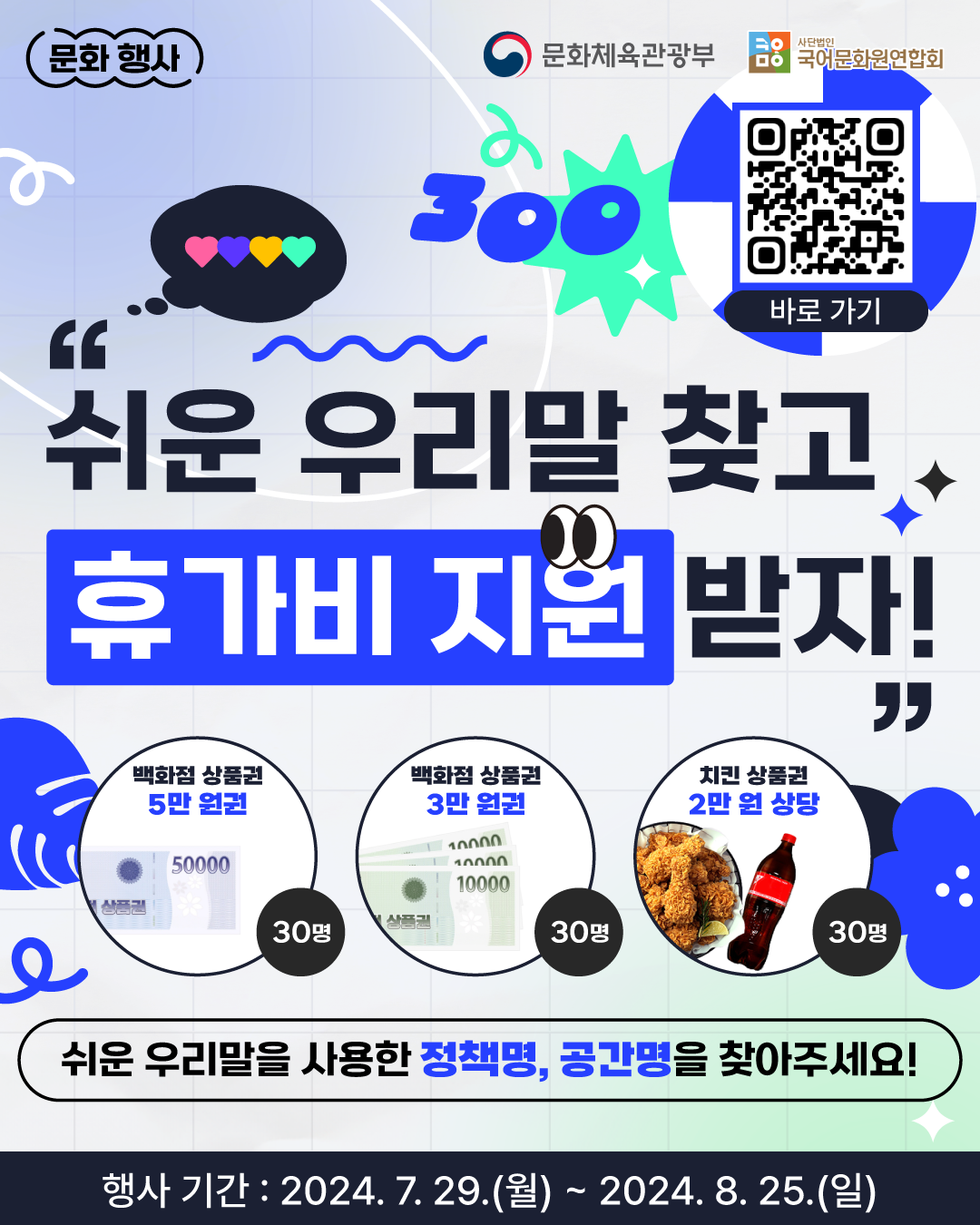 [국어문화원연합회] 쉬운 우리말 찾고 휴가비 지원 받자!